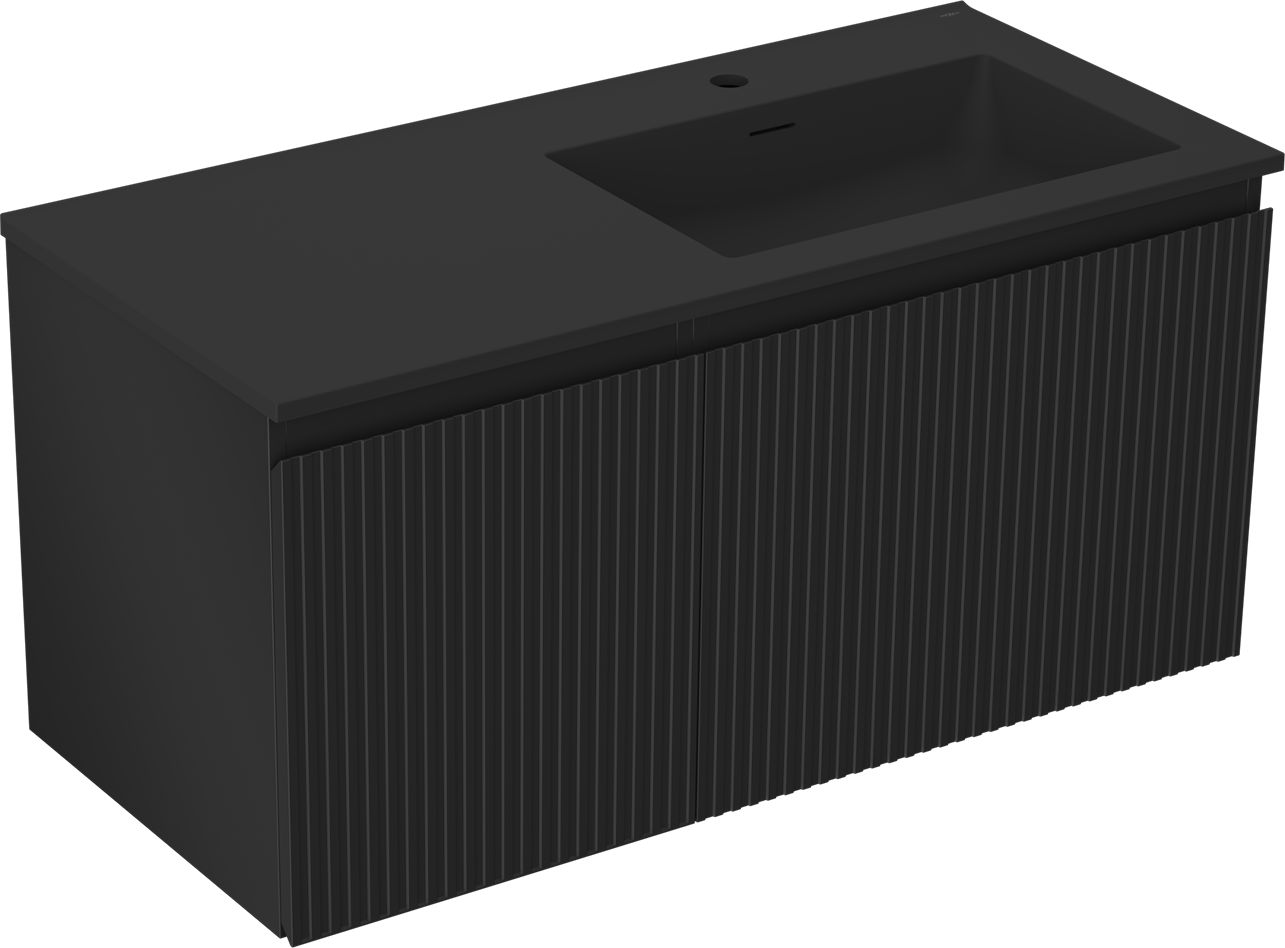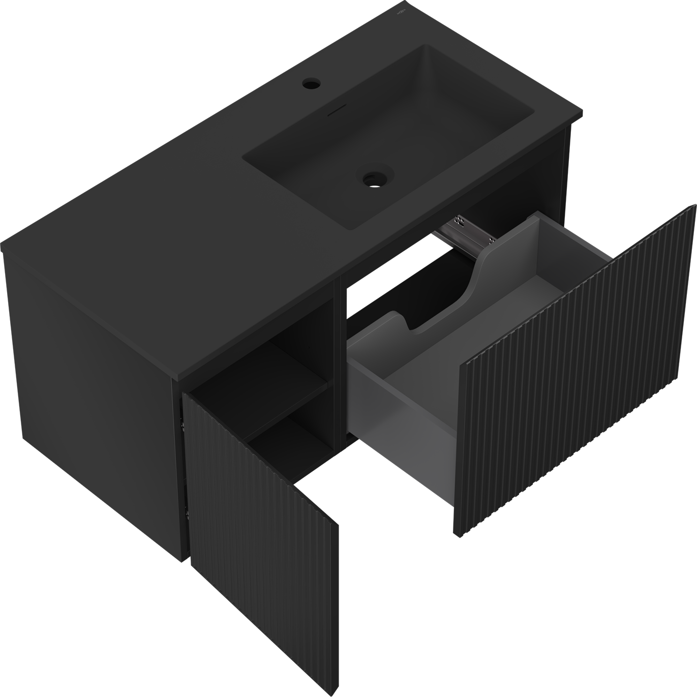 Mexen Rivel 100 cm badrumsskåp med tvättställ Otis höger, 1S, 1D, räfflad, svart matt - 91A23-10047-3-BBFF71-W18P71