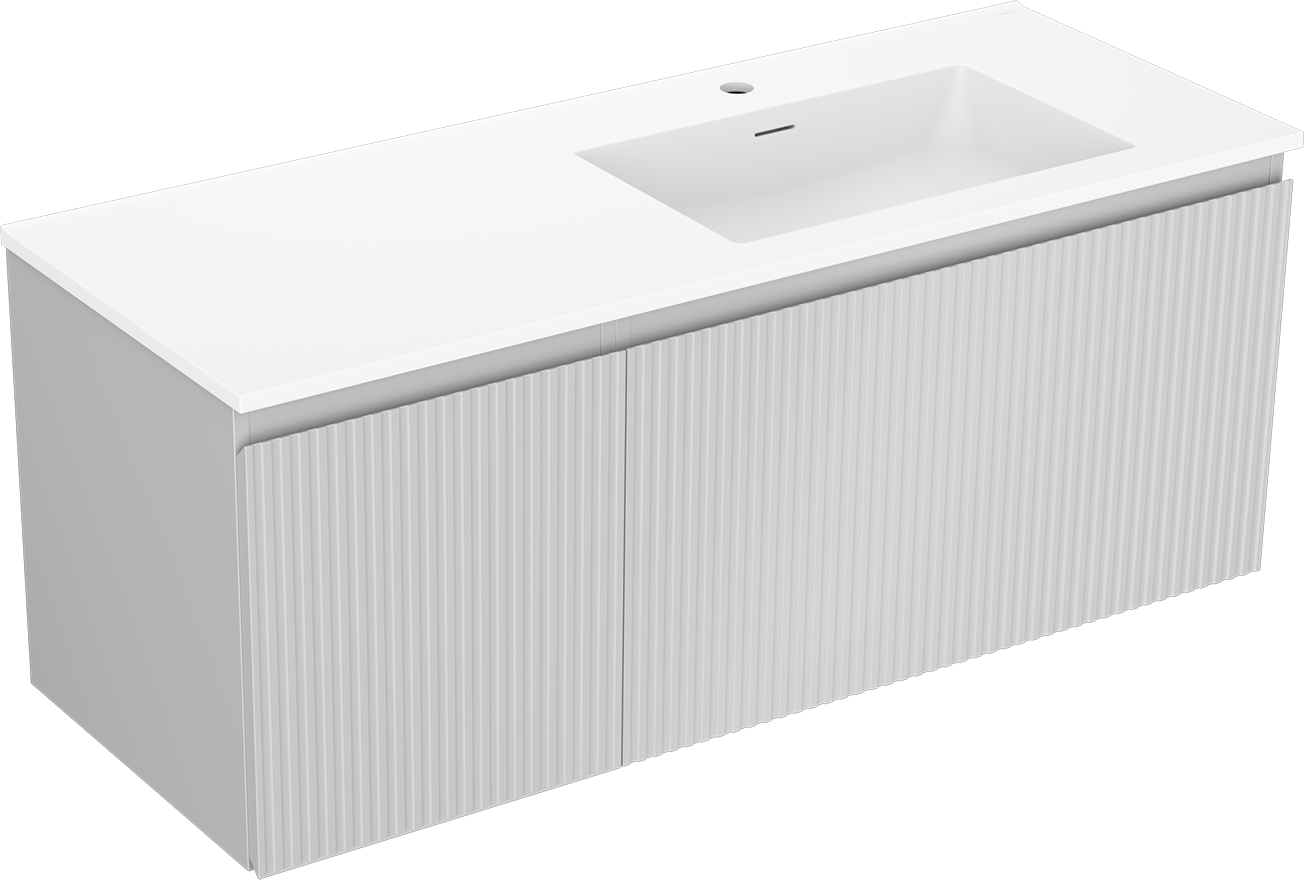 Mexen Rivel 120 cm badrumsskåp med tvättställ Otis höger, 1S, 1D, räfflad, grå matt/vit matt - 91A23-12047-3-BBFF62-W18P01