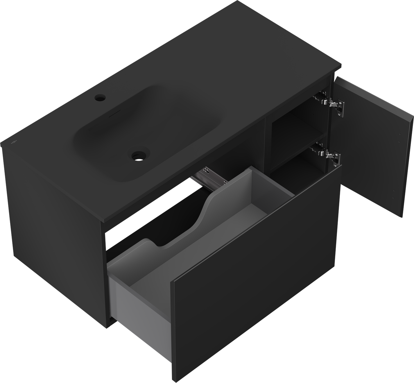 Mexen Orio badrumsskåp 100 cm med vänster tvättställ Vela, 1S, 1D, svart matt - 91A13-10047-3-BBFF71-W23L71