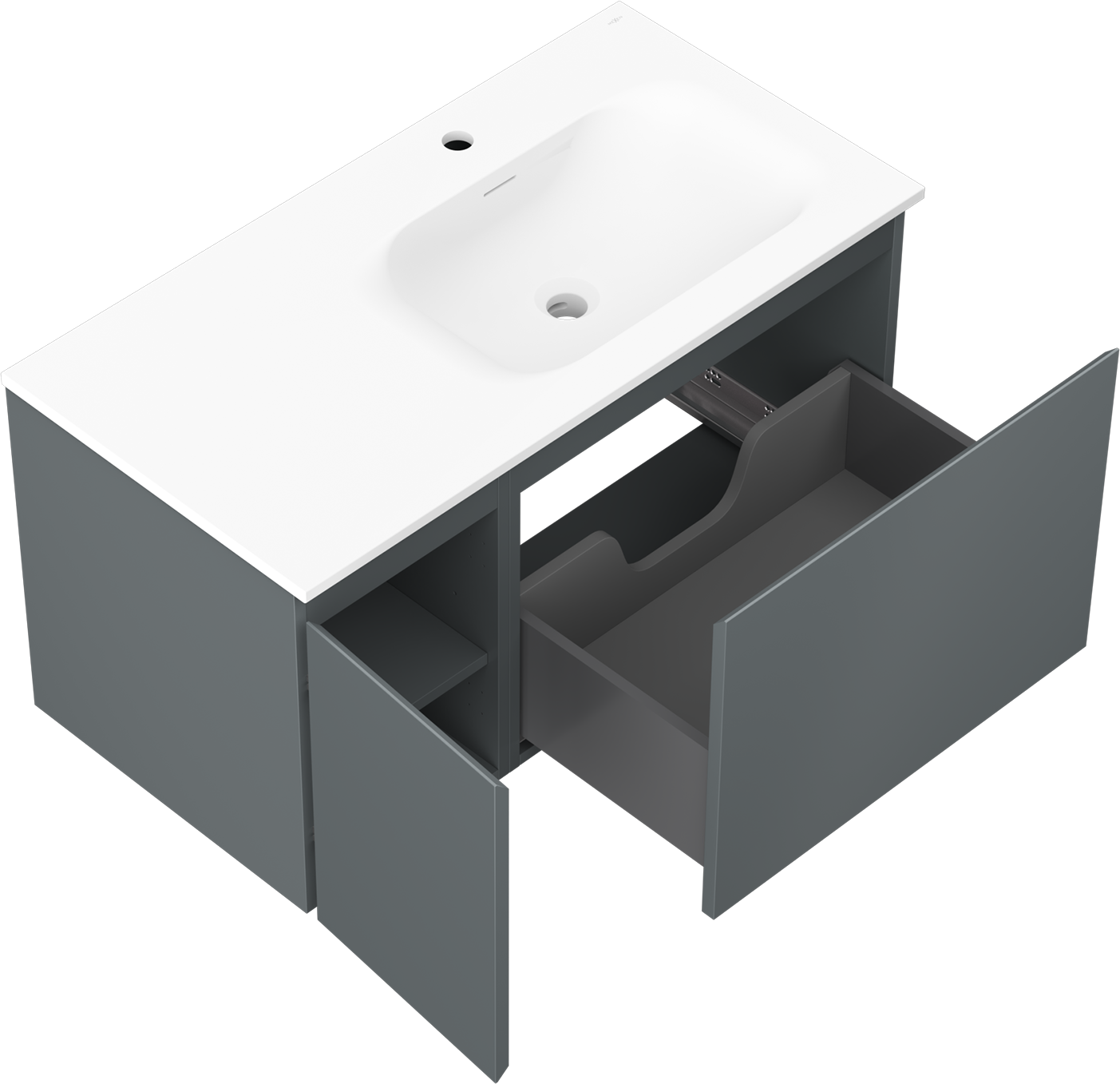 Mexen Orio 90 cm badrumsskåp med tvättställ Vela höger, 1S, 1D, grafit matt/vit matt - 91A13-09047-3-BBFF66-W23P01