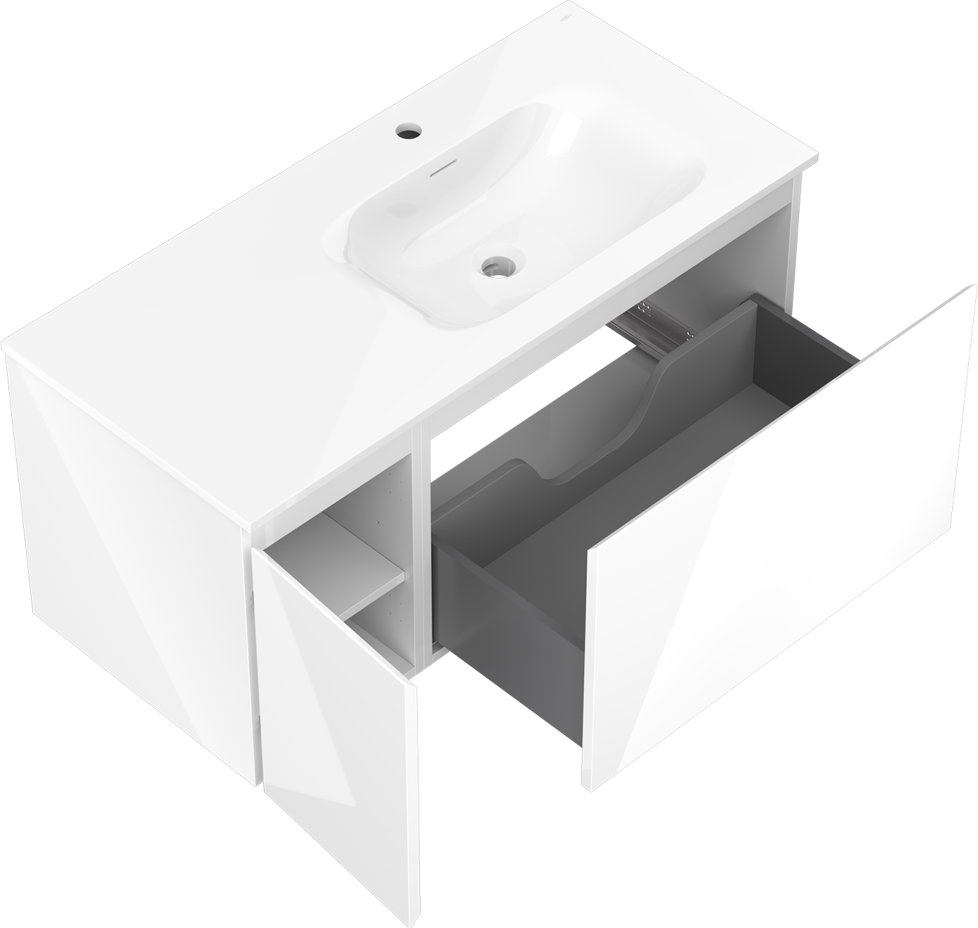 Mexen Orio badrumsskåp 100 cm med handfat Vela höger, 1S, 1D, vit högblank - 91A13-10047-3-BBFF00-W23P00