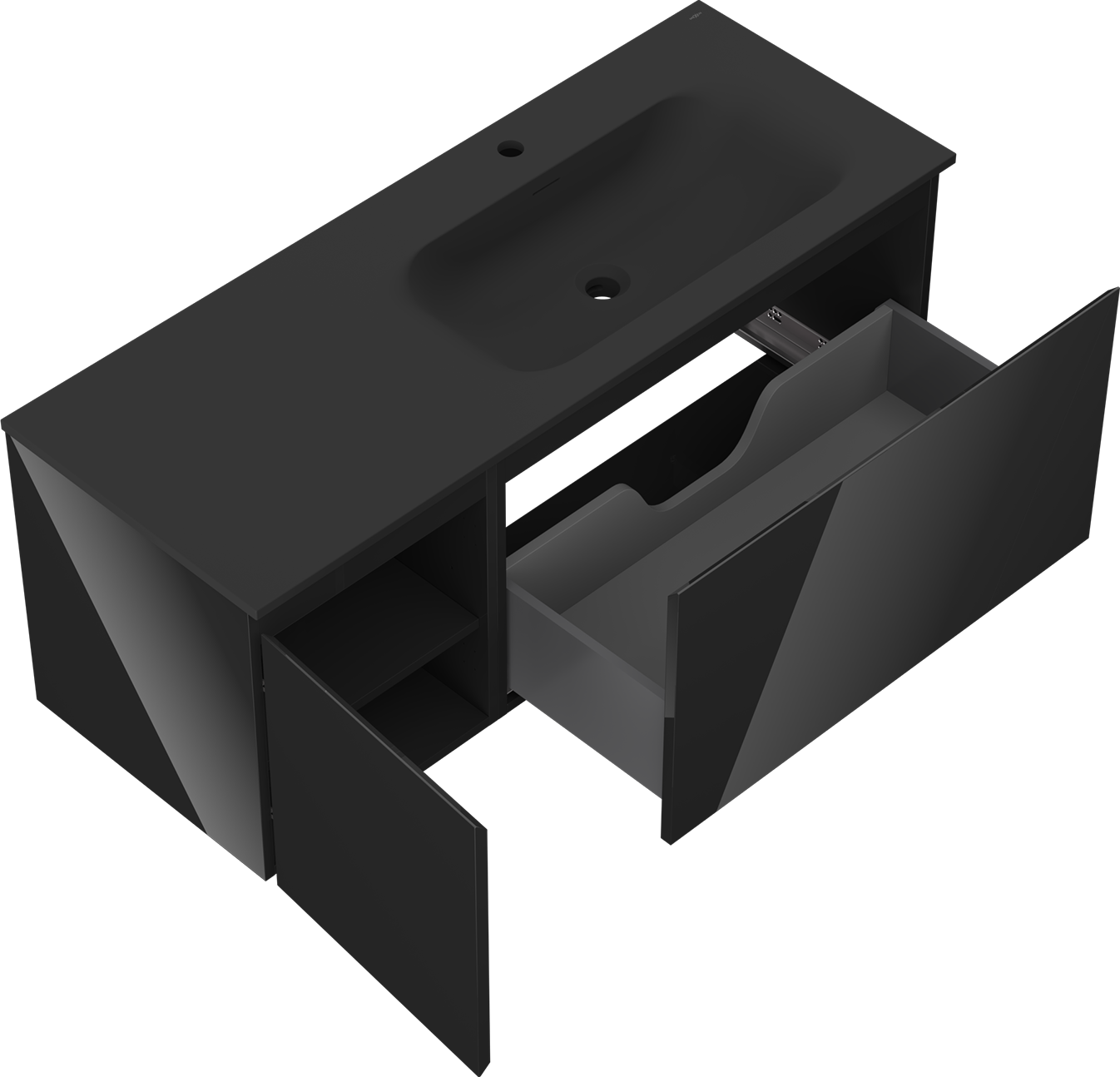 Mexen Orio badrumsskåp 120 cm med handfat Vela höger, 1S, 1D, svart glans/svart matt - 91A13-12047-3-BBFF70-W23P71