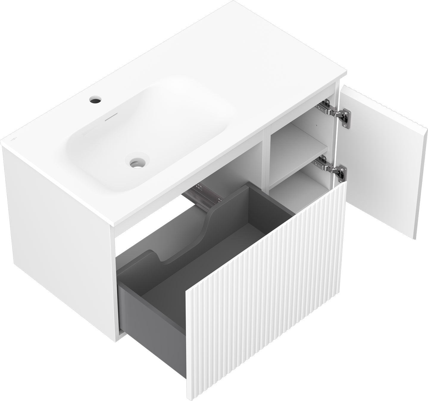 Mexen Rivel badrumsskåp 90 cm med tvättställ Vela vänster, 1S, 1D, räfflad, vit matt - 91A23-09047-3-BBFF01-W23L01