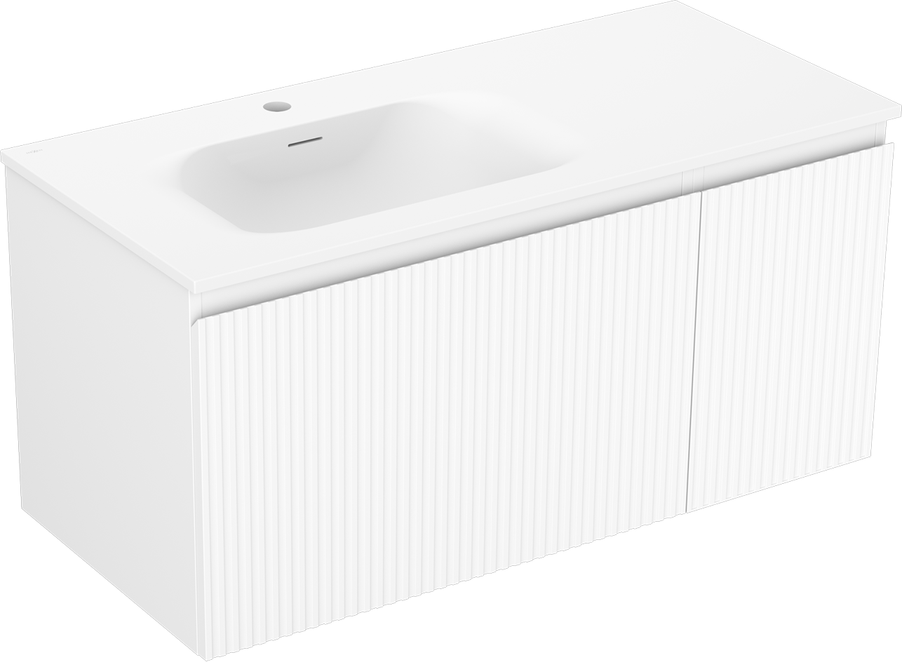 Mexen Rivel badrumsskåp 100 cm med tvättställ Vela vänster, 1S, 1D, räfflad, vit matt - 91A23-10047-3-BBFF01-W23L01
