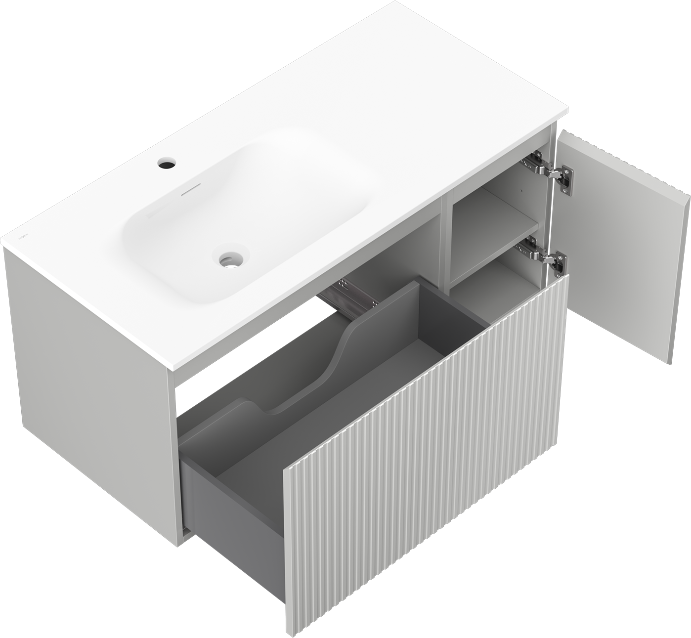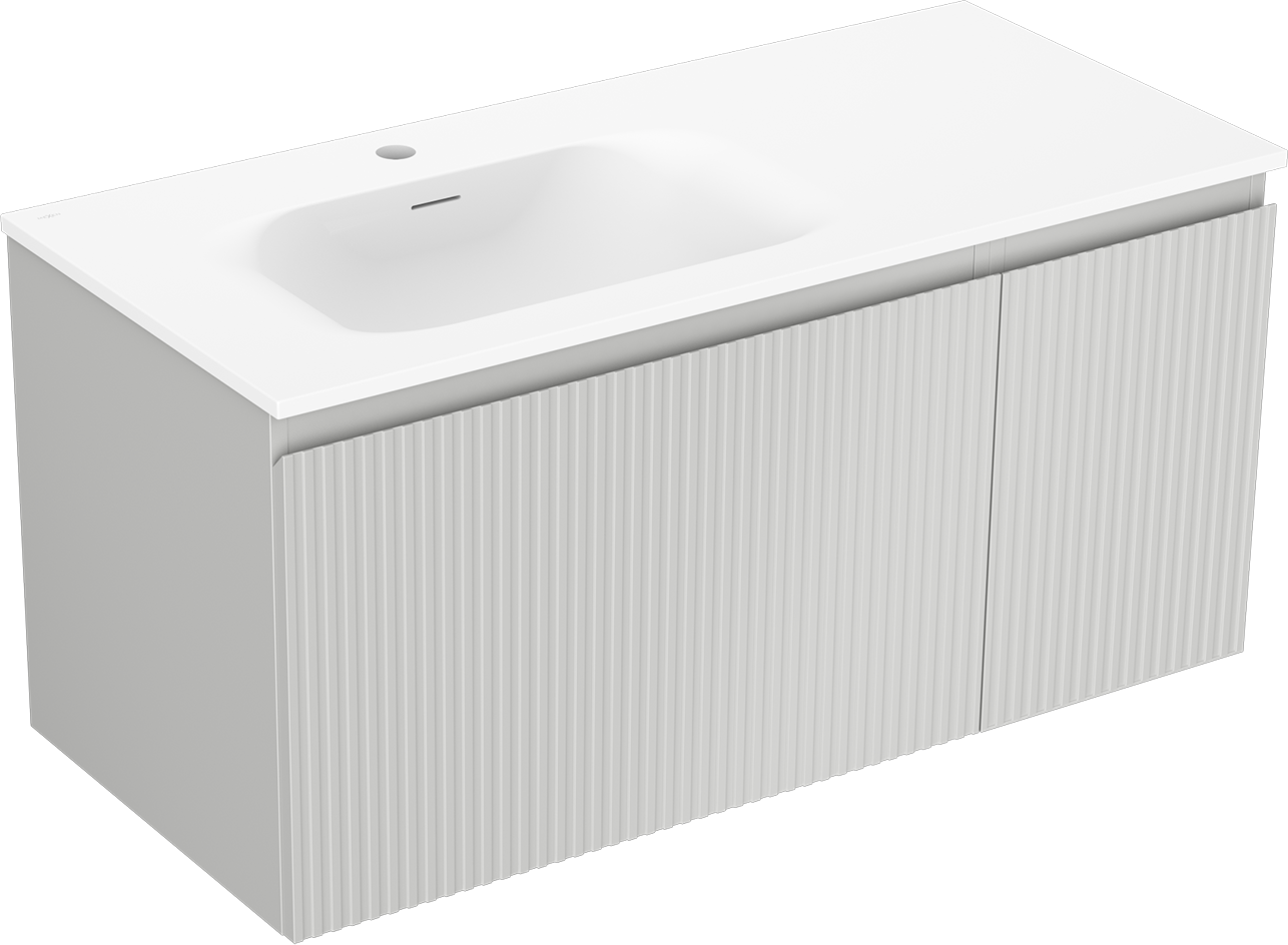 Mexen Rivel badrumsskåp 100 cm med handfat Vela vänster, 1S, 1D, räfflad, grå matt/vit matt - 91A23-10047-3-BBFF62-W23L01