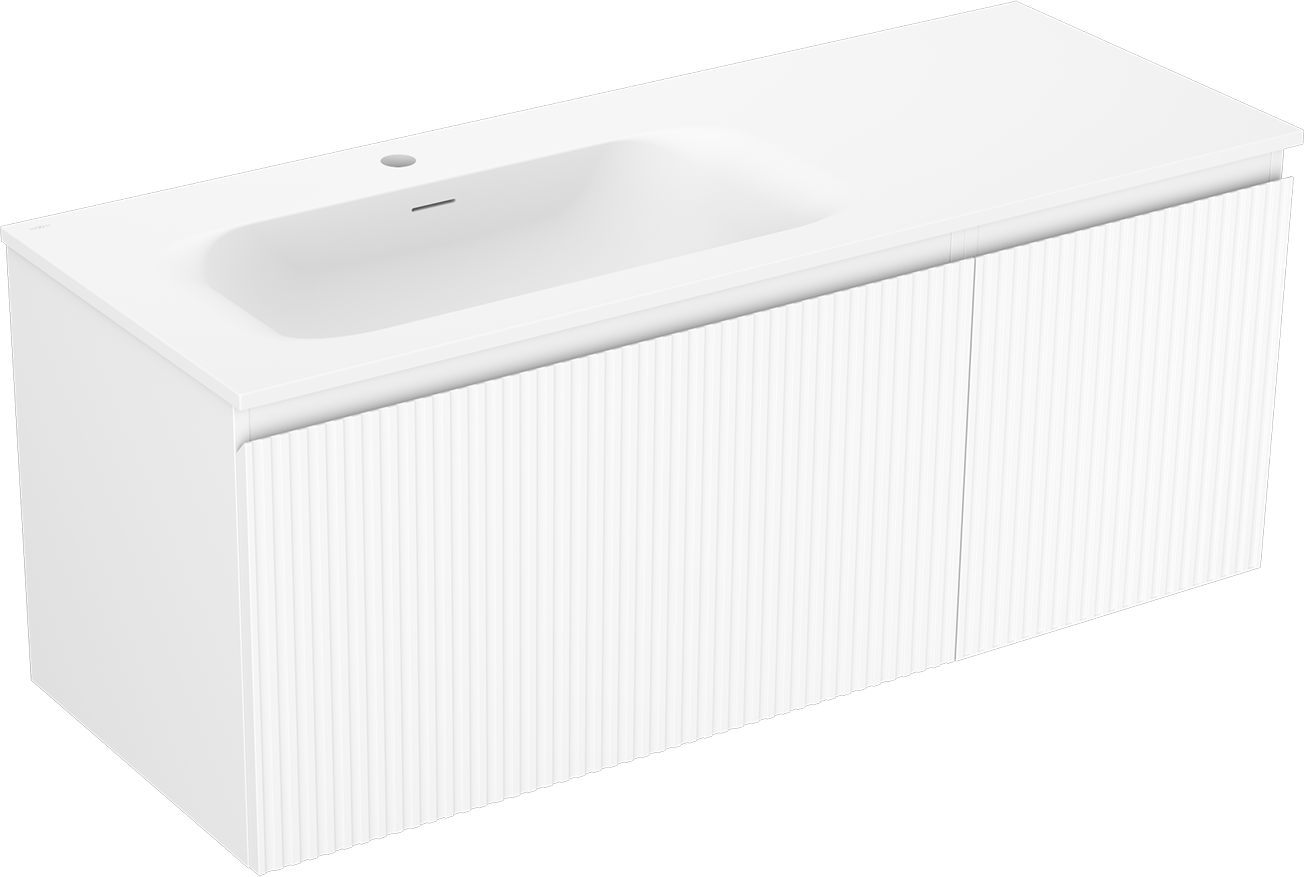 Mexen Rivel badrumsskåp 120 cm med Vela tvättställ vänster, 1S, 1D, räfflad, vit matt - 91A23-12047-3-BBFF01-W23L01