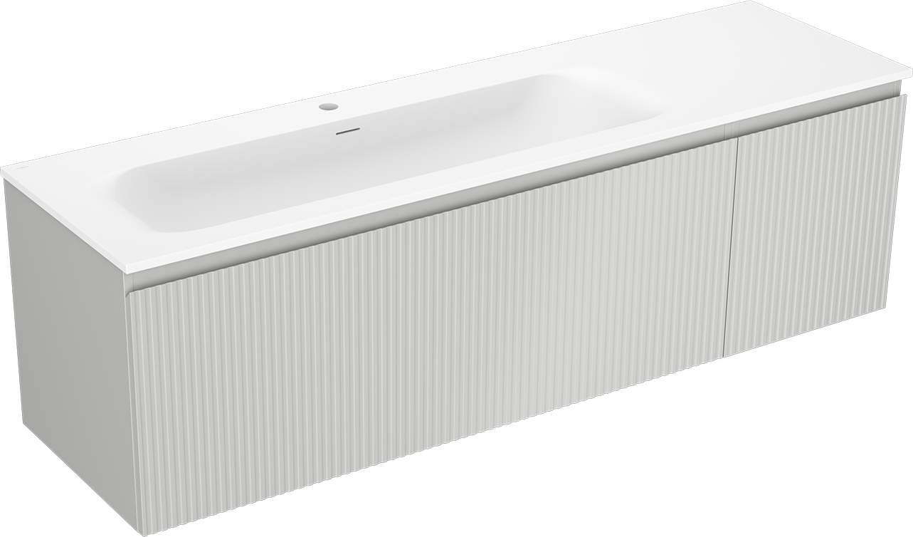 Utskärningen i lådan är utformad på ett sådant sätt att den rymmer vattenlåset som är nödvändigt i tvättställsinstallationer. Tack vare detta kan möbeln installeras fullt ut funktionellt, utan att behöva avstå från utrymme i lådan för installationen.