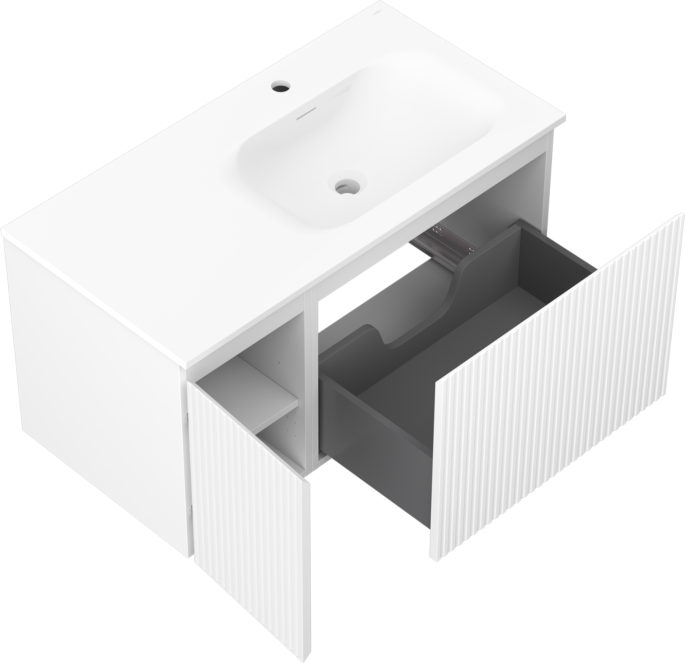 Mexen Rivel badrumsskåp 90 cm med handfat Vela höger, 1S, 1D, räfflat, vit matt - 91A23-09047-3-BBFF01-W23P01