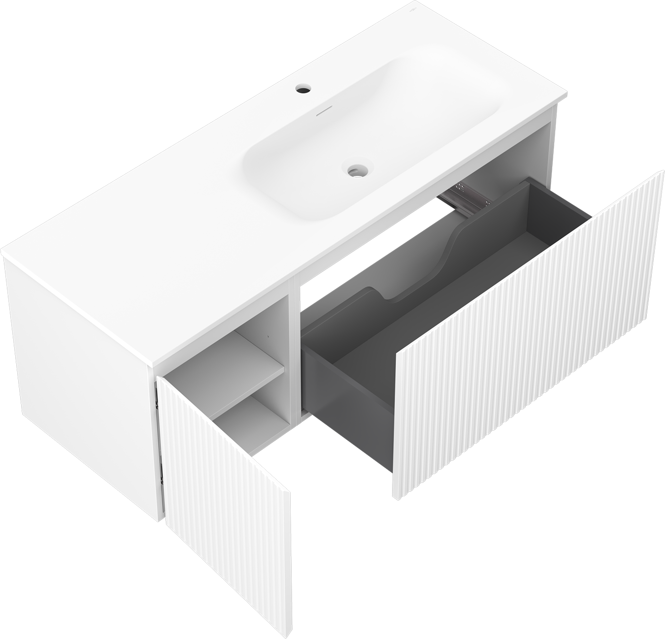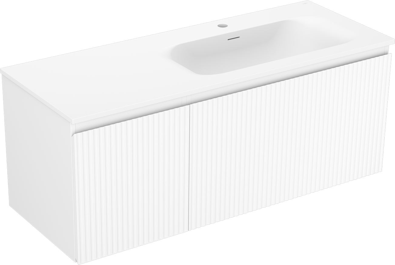 Mexen Rivel badrumsskåp 120 cm med handfat Vela höger, 1S, 1D, ribbad, vit matt - 91A23-12047-3-BBFF01-W23P01