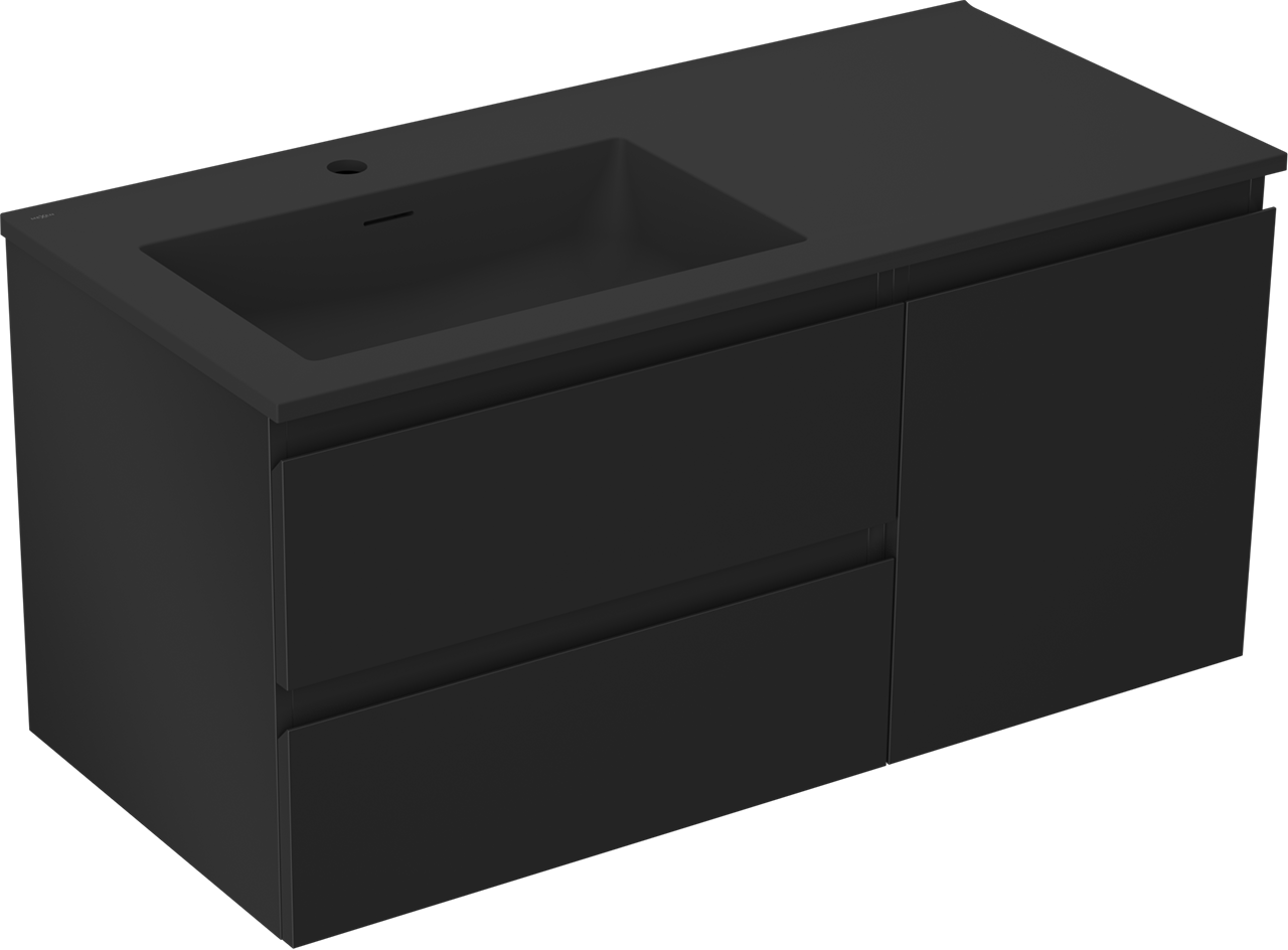 Utskärningen i lådan är utformad på ett sådant sätt att den rymmer vattenlåset som är nödvändigt i tvättställsinstallationer. Tack vare detta kan möbeln installeras fullt ut funktionellt, utan att behöva avstå från utrymme i lådan för installationen.