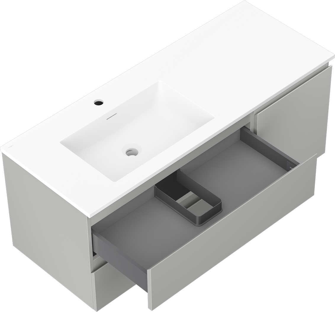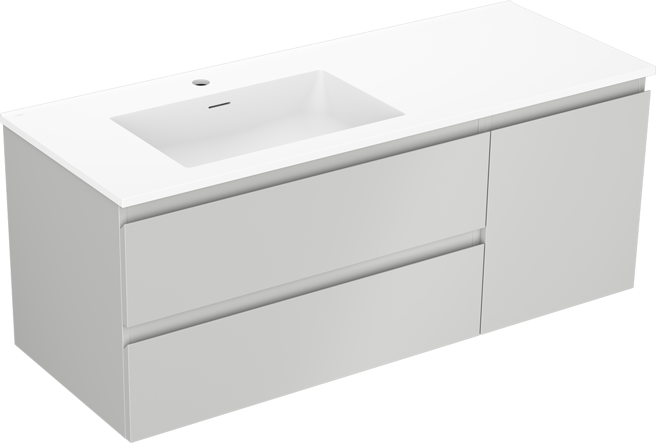 Mexen Orio 120 cm badrumsskåp med tvättställ Otis vänster, 2S, 1D, grå matt/vit matt - 91A13-12047-3-BBFFF62-W18L01