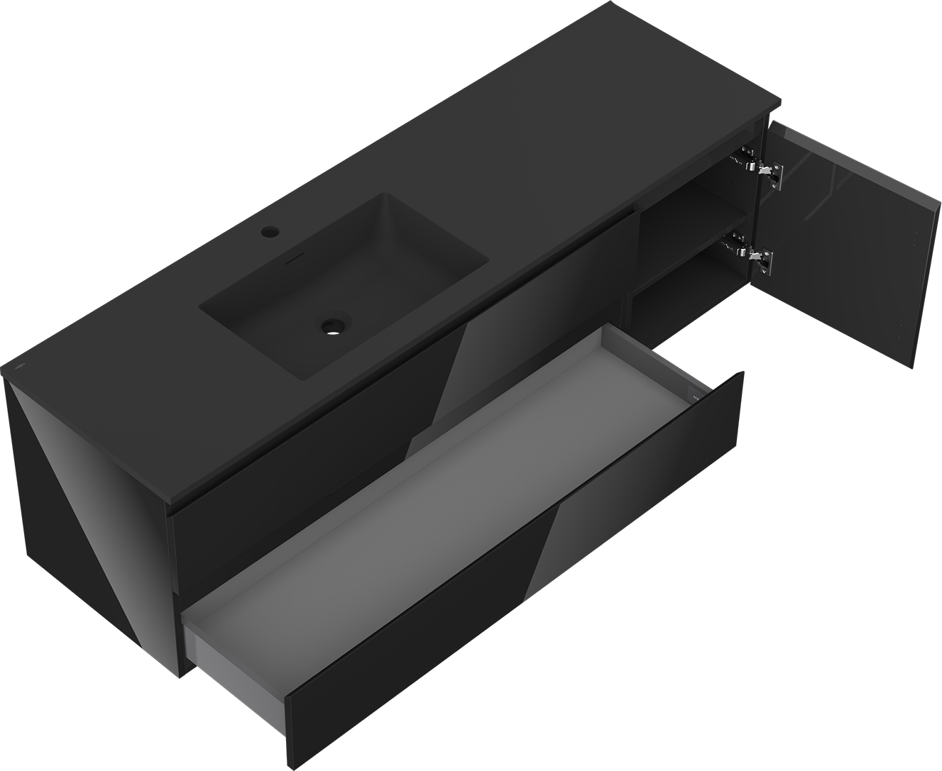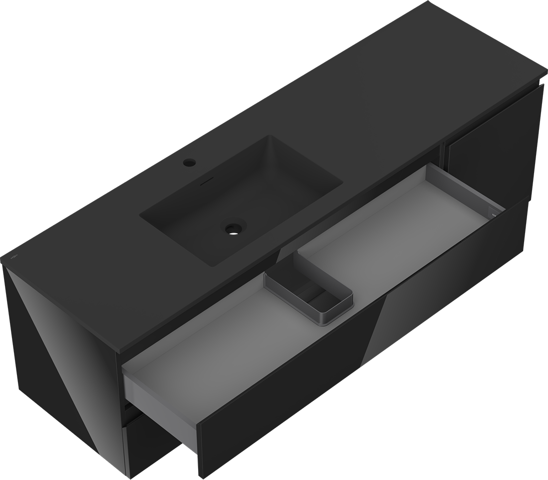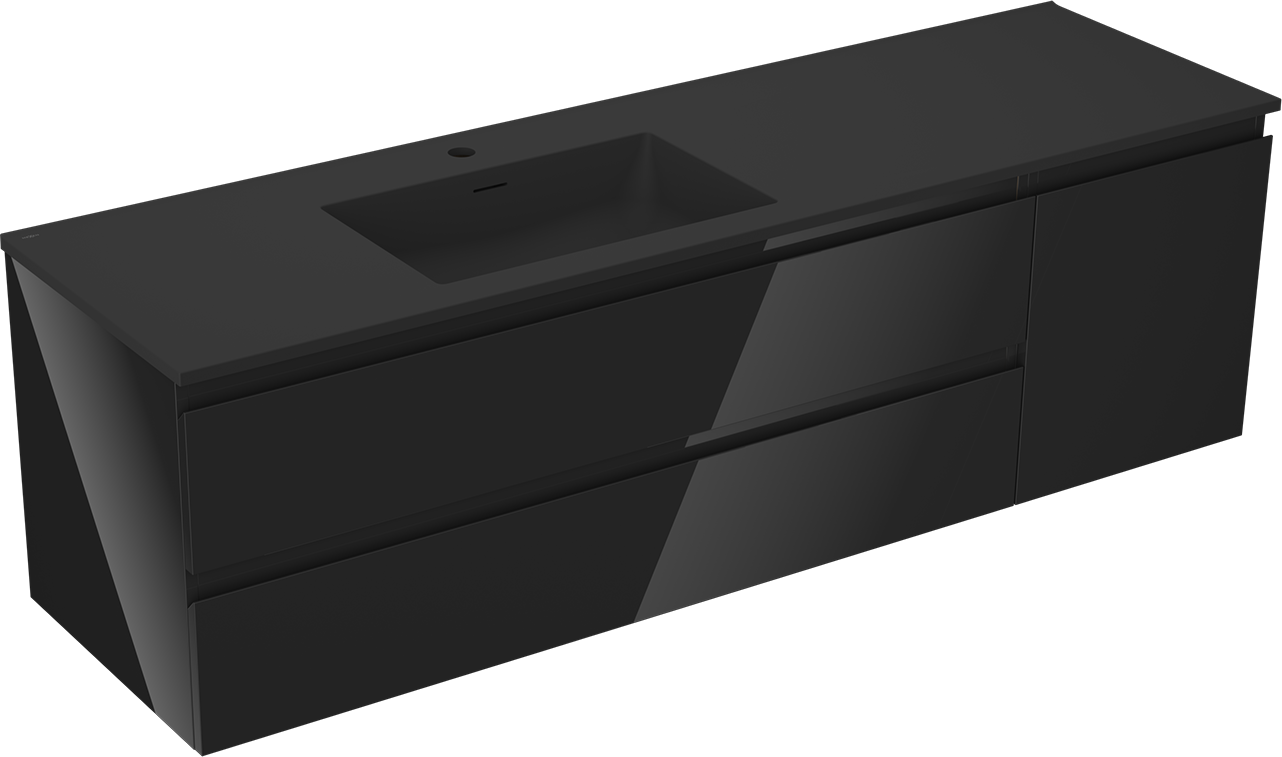 Mexen Orio badrumsskåp 160 cm med handfat Otis vänster, 2S, 1D, svart glans/svart matt - 91A13-16047-3-BBFFF70-W18L71