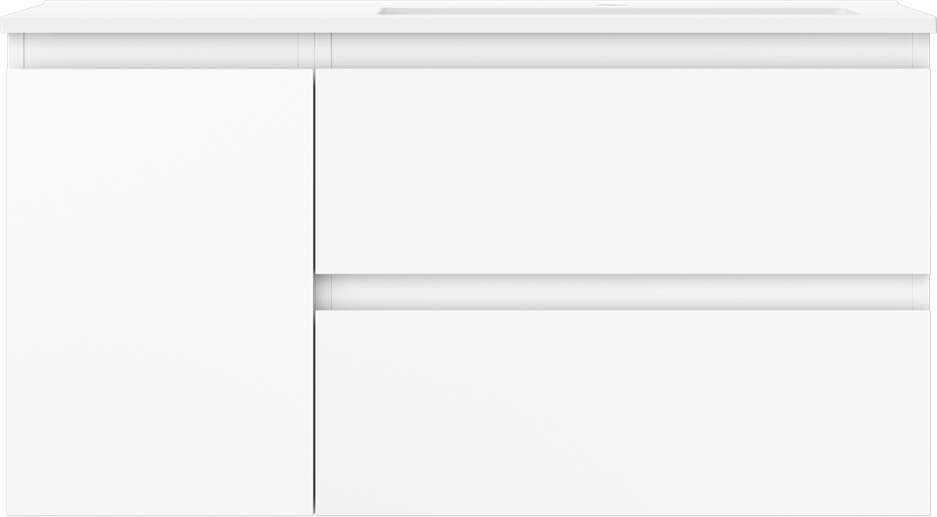 Utskärningen i lådan är utformad på ett sådant sätt att den rymmer vattenlåset som är nödvändigt i tvättställsinstallationer. Tack vare detta kan möbeln installeras fullt ut funktionellt, utan att behöva avstå från utrymme i lådan för installationen.