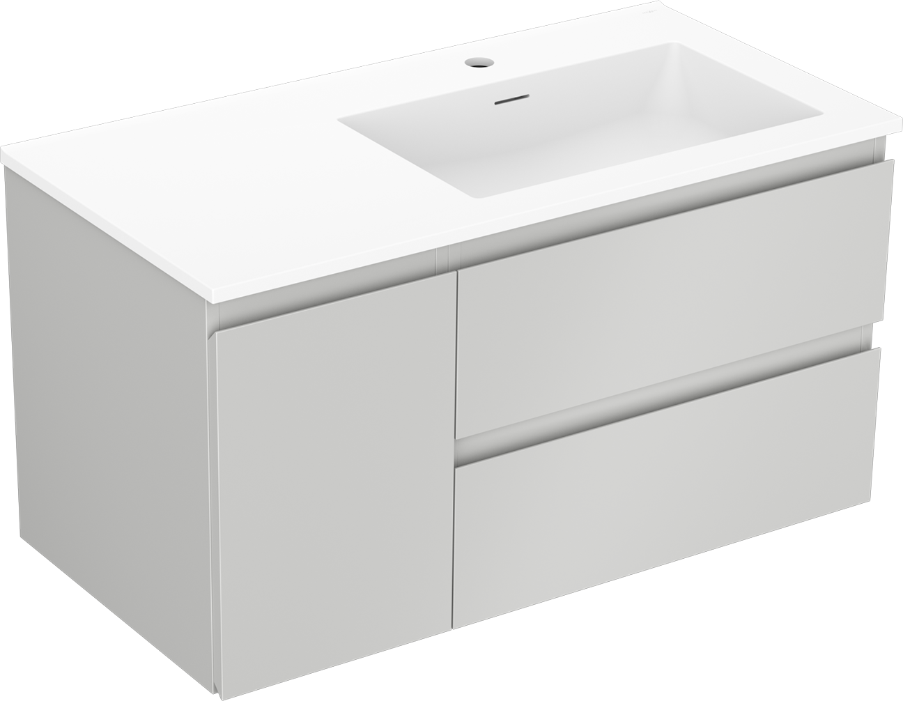 Mexen Orio badrumsskåp 90 cm med handfat Otis höger, 2S, 1D, grå matt/vit matt - 91A13-09047-3-BBFFF62-W18P01