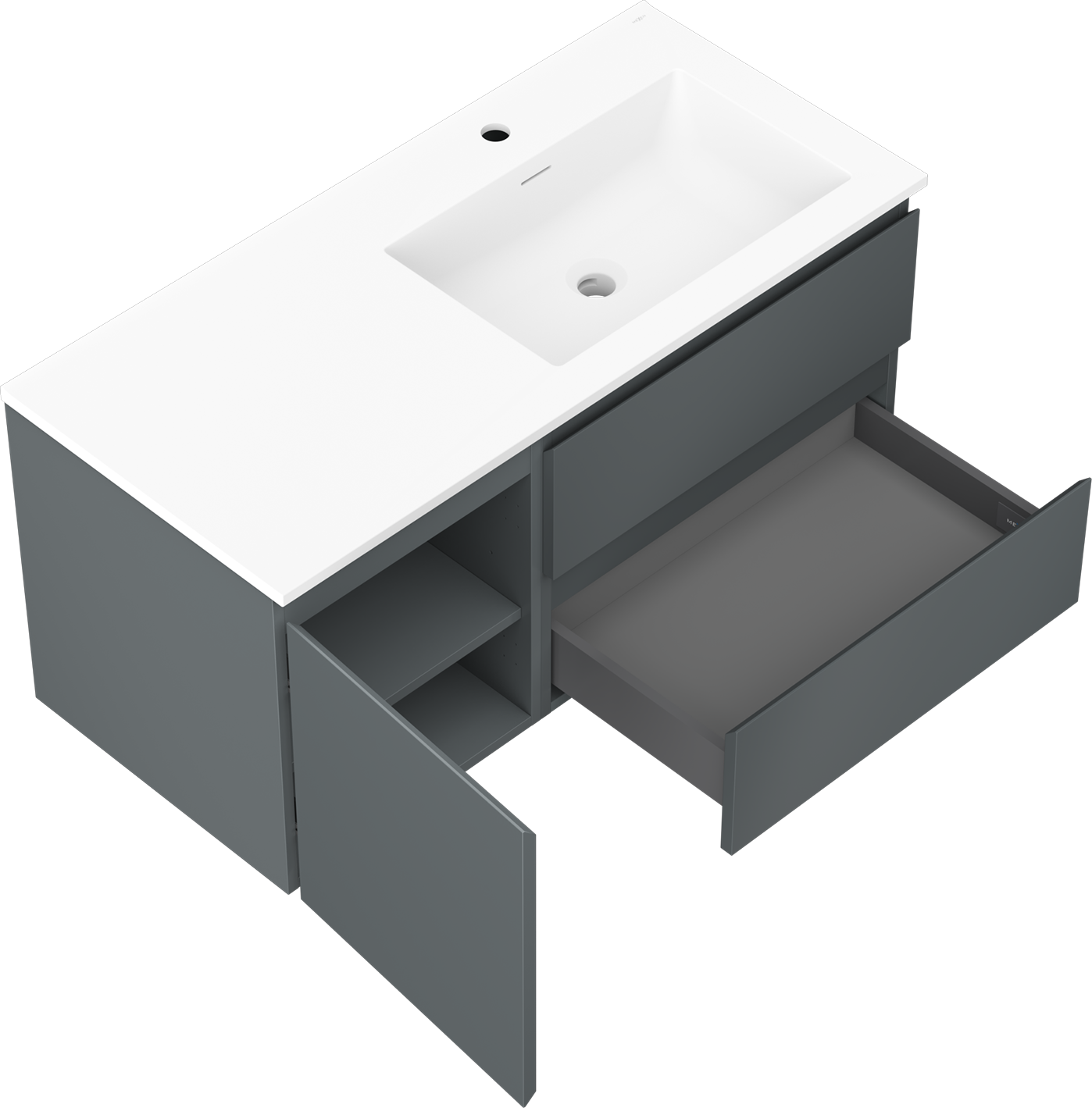 Mexen Orio 100 cm badrumsskåp med handfat Otis höger, 2L, 1D, grafit matt/vit matt - 91A13-10047-3-BBFFF66-W18P01