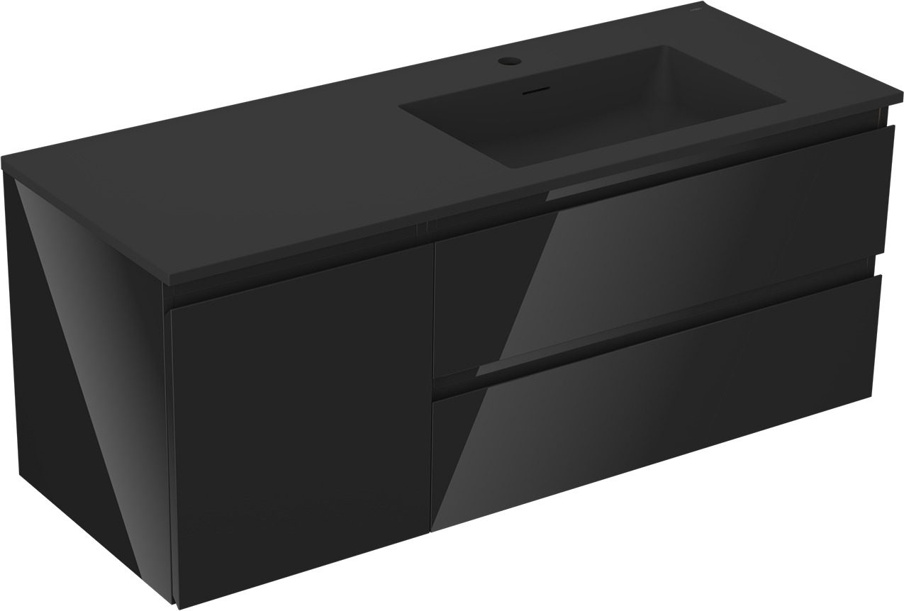 Mexen Orio badrumsskåp 120 cm med handfat Otis höger, 2S, 1D, svart glans/svart matt - 91A13-12047-3-BBFFF70-W18P71