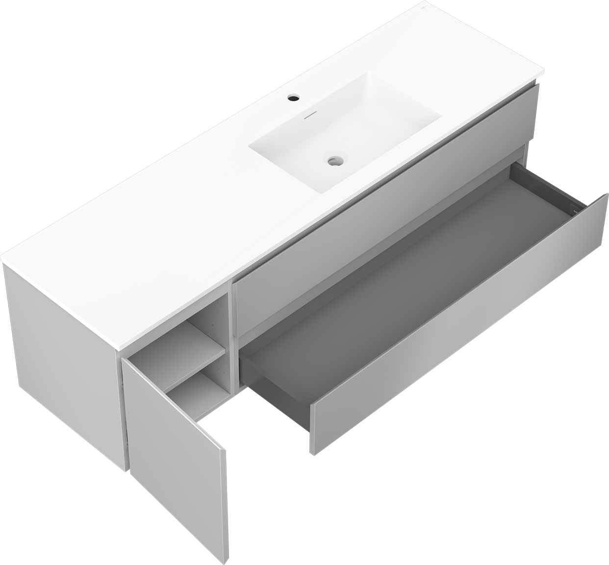 Mexen Orio badrumsskåp 160 cm med handfat Otis höger, 2S, 1D, grå matt/vit matt - 91A13-16047-3-BBFFF62-W18P01