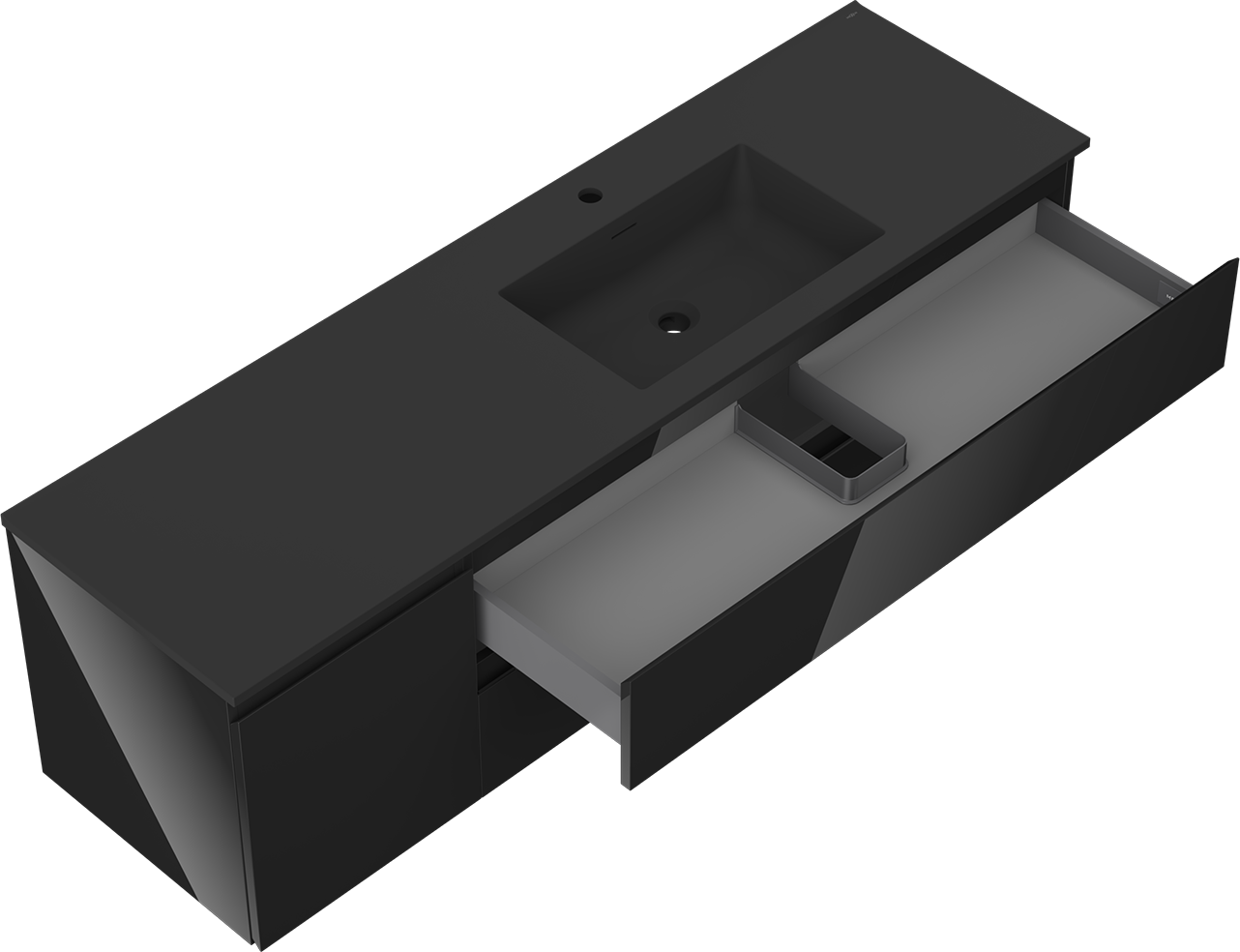 Mexen Orio badrumsskåp 160 cm med tvättställ Otis höger, 2S, 1D, svart glans/svart matt - 91A13-16047-3-BBFFF70-W18P71
