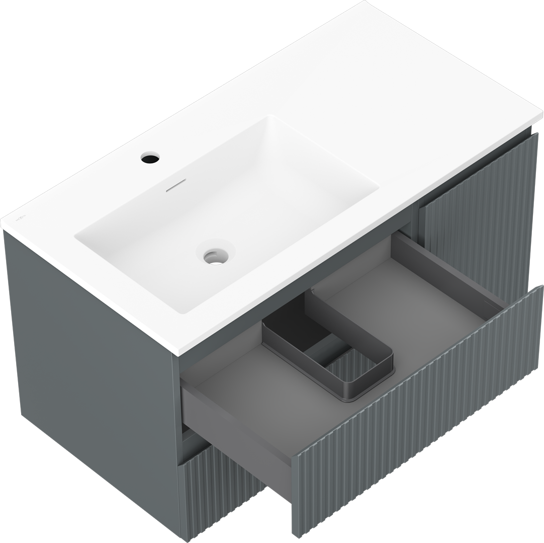 Mexen Rivel 90 cm badrumsskåp med vänster Otis-handfat, 2L, 1D, räfflad, matt grafit/vit matt - 91A23-09047-3-BBFFF66-W18L01