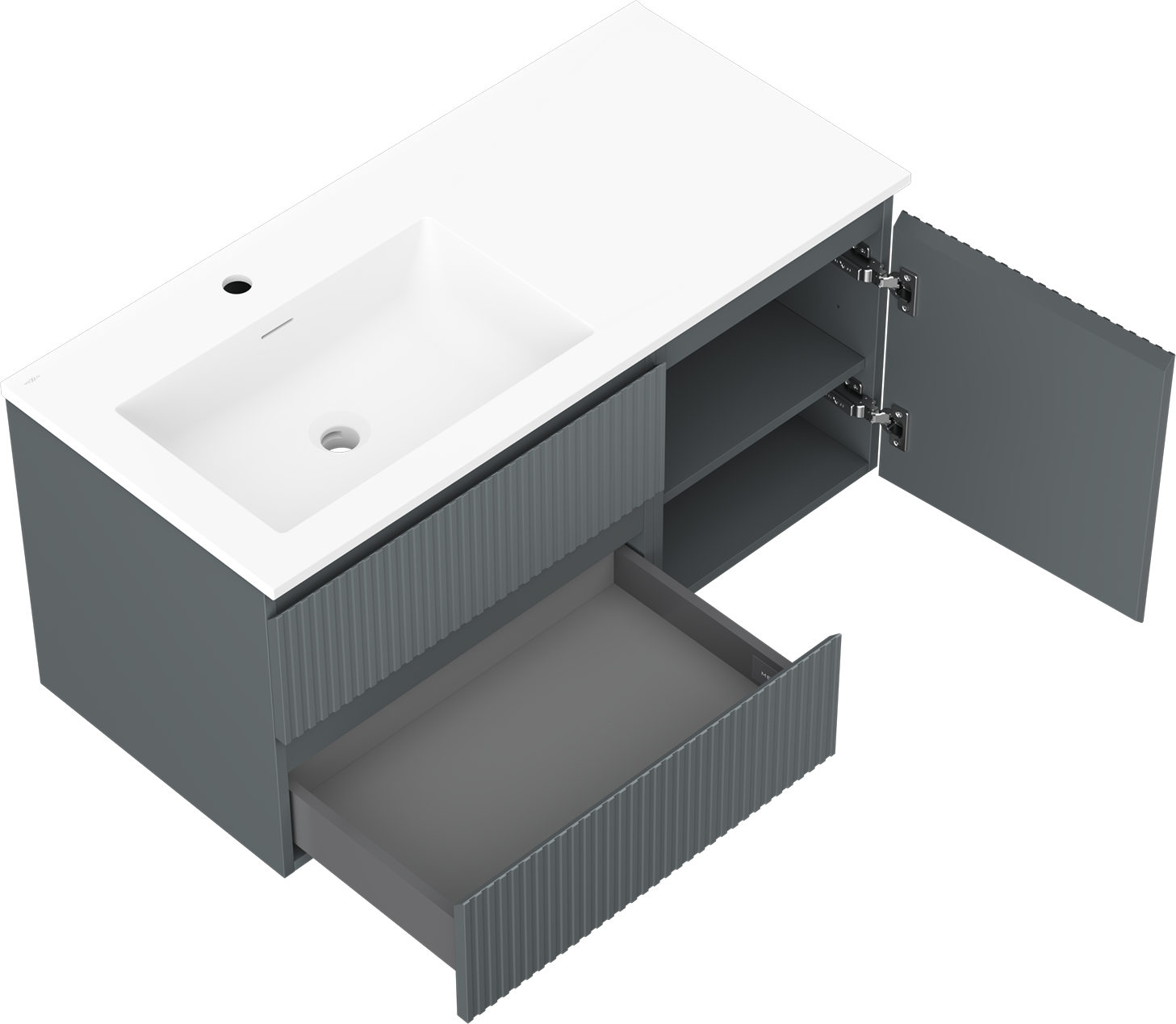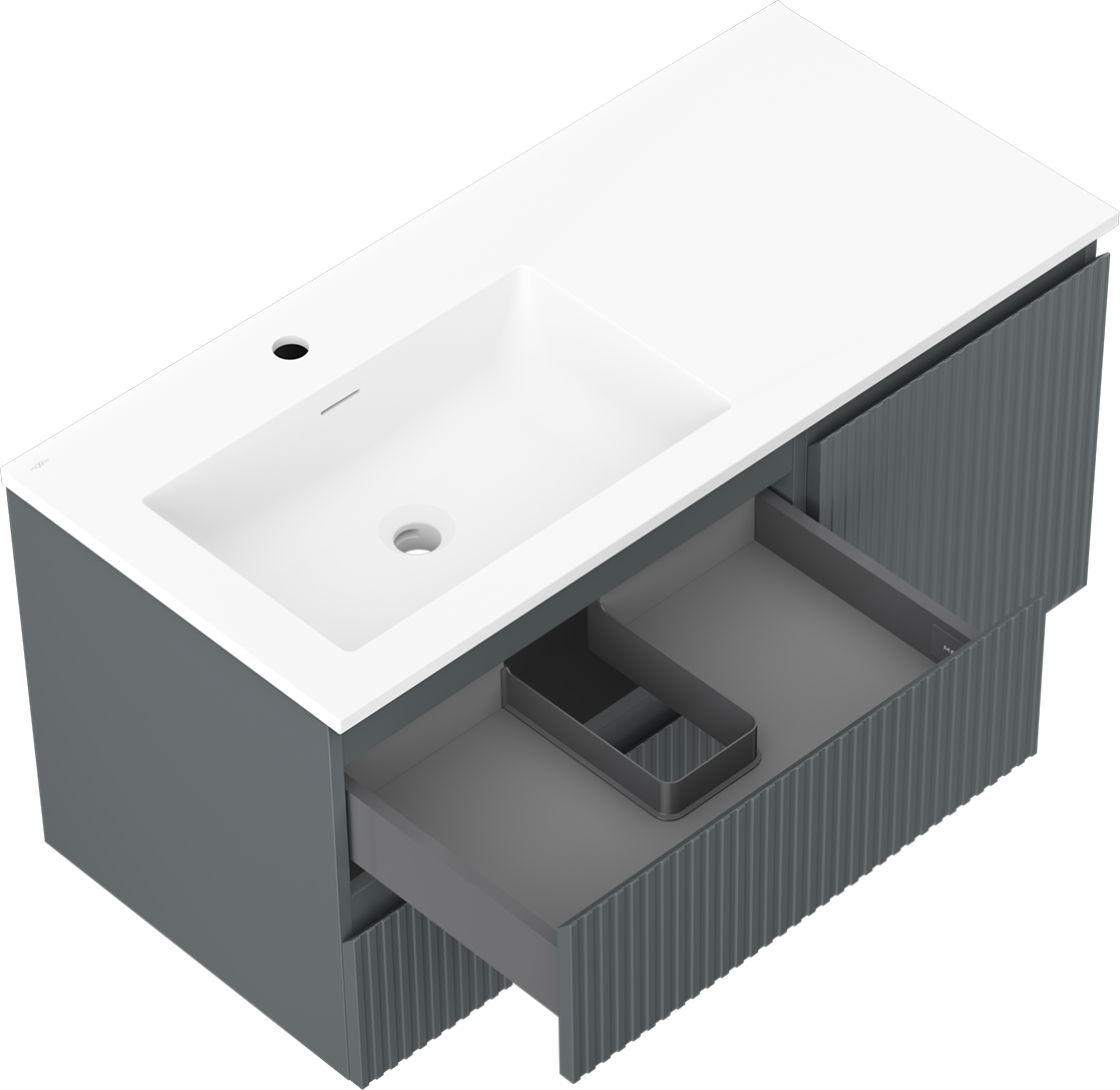 Mexen Rivel badrumsskåp 100 cm med Otis tvättställ vänster, 2S, 1D, räfflad, grafit/vit matt - 91A23-10047-3-BBFFF66-W18L01