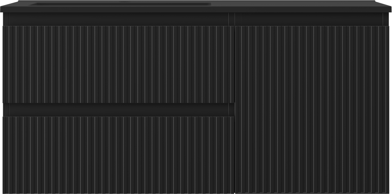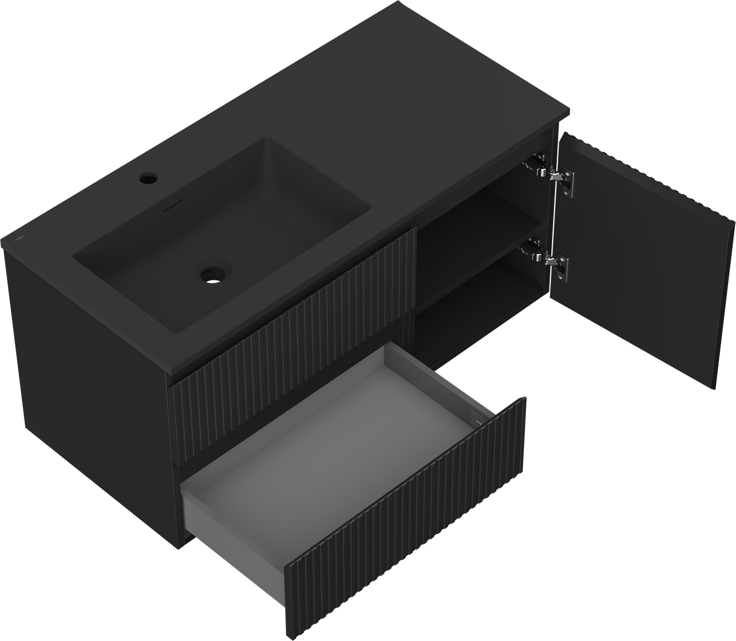 Mexen Rivel badrumsskåp 100 cm med Otis vänster tvättställ, 2S, 1D, räfflad, svart matt - 91A23-10047-3-BBFFF71-W18L71