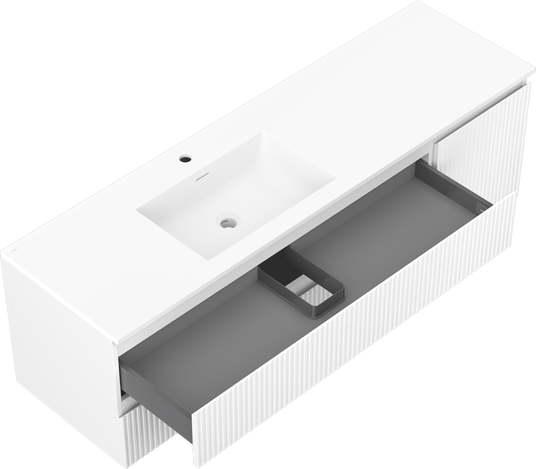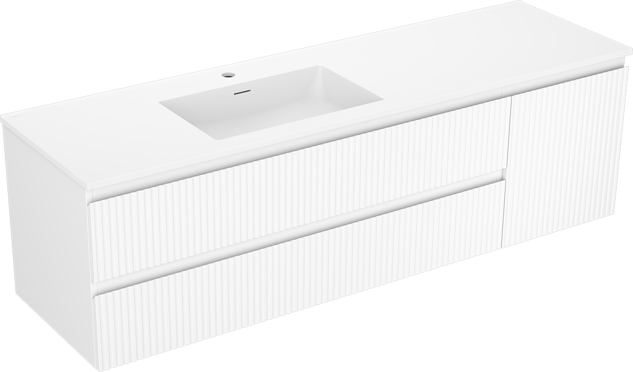 Mexen Rivel badrumsskåp 160 cm med tvättställ Otis vänster, 2S, 1D, rifle, vit matt - 91A23-16047-3-BBFFF01-W18L01