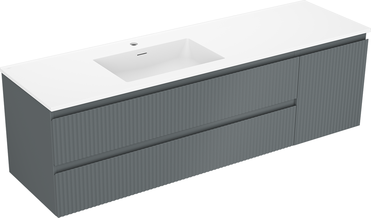 Mexen Rivel badrumsskåp 160 cm med Otis-tvättställ vänster, 2S, 1D, räfflad, grafit/vit matt - 91A23-16047-3-BBFFF66-W18L01