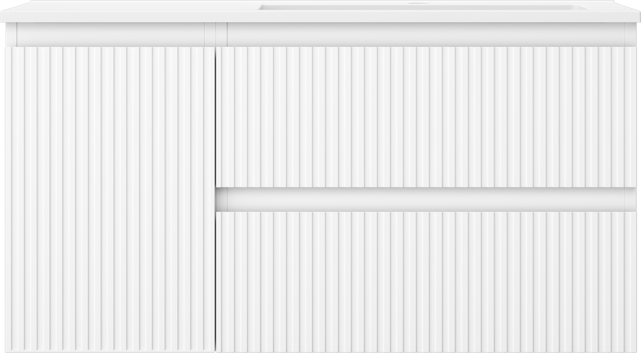 Mexen Rivel badrumsskåp 90 cm med handfat Otis höger, 2 lådor, 1 dörr, räfflad, vit matt - 91A23-09047-3-BBFFF01-W18P01