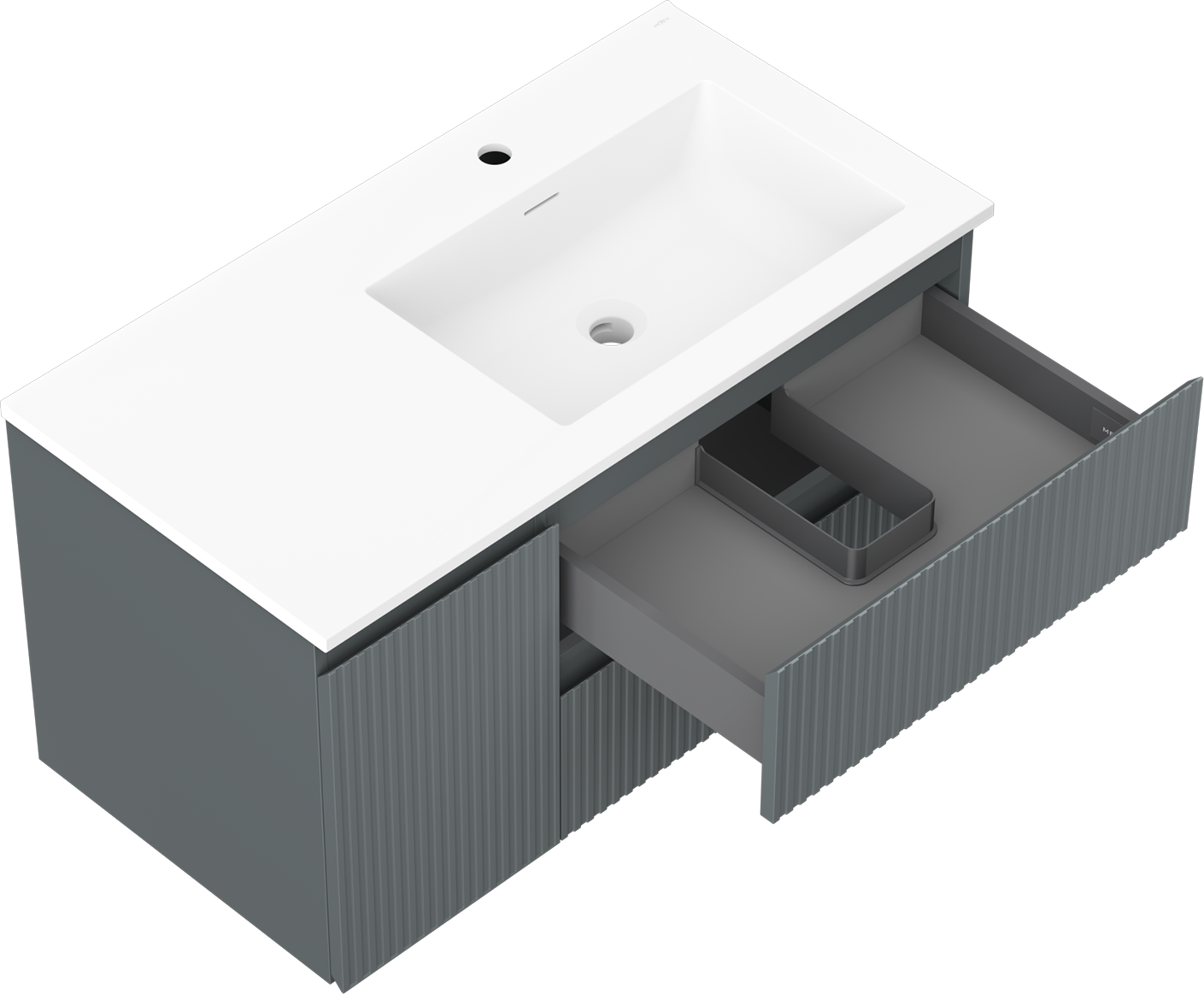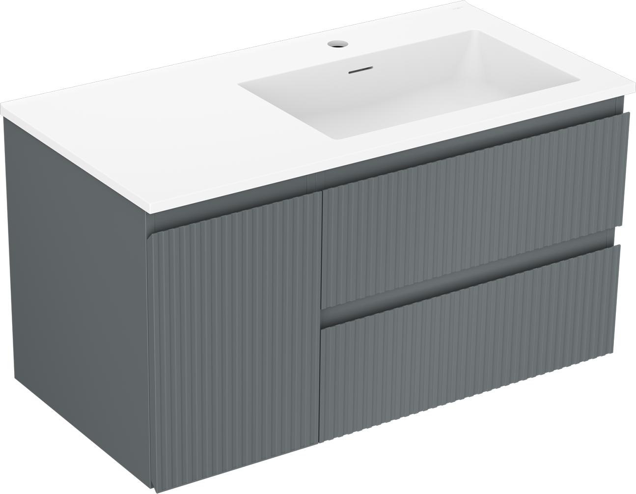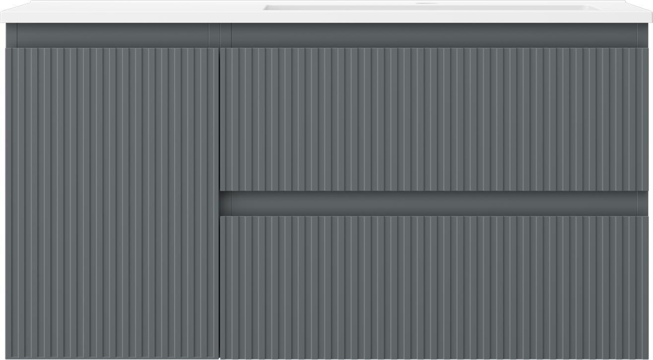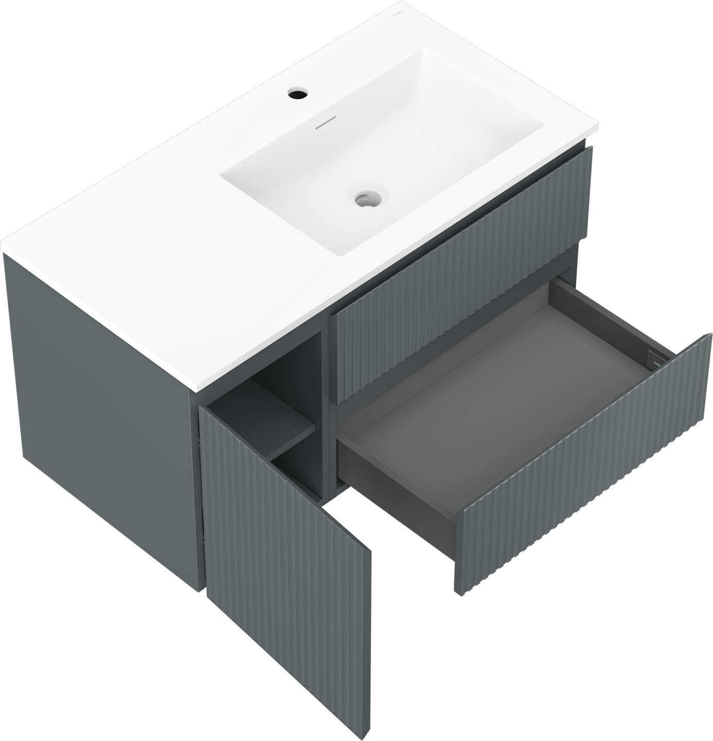 Mexen Rivel Badrumsskåp 90 cm med handfat Otis höger, 2L, 1D, räfflad, grafit/vit matt - 91A23-09047-3-BBFFF66-W18P01