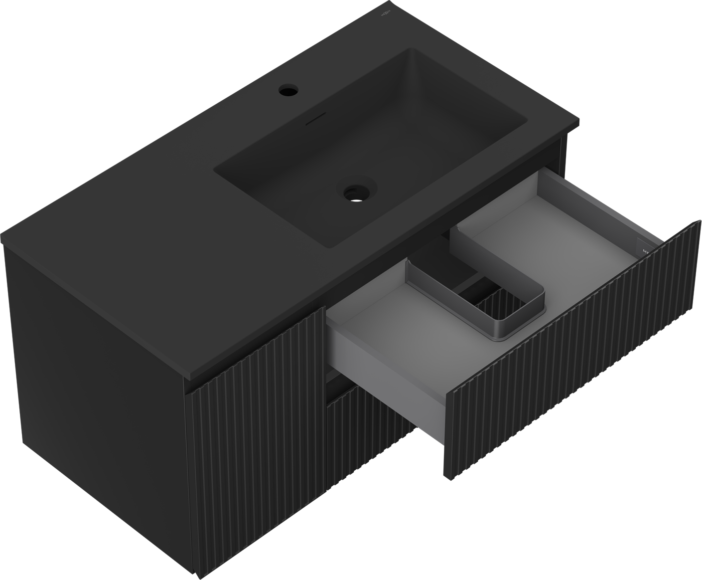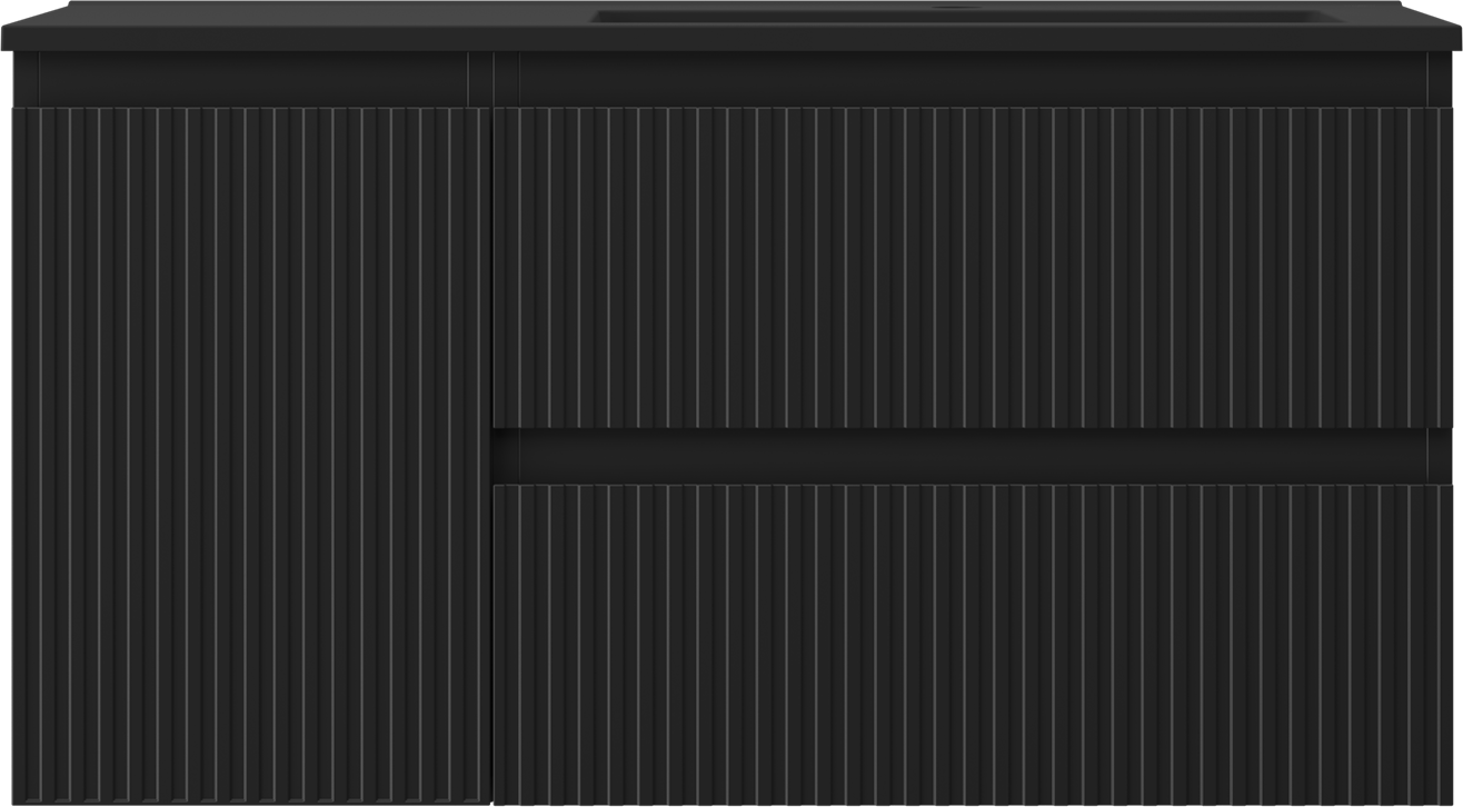 Mexen Rivel badrumsskåp 90 cm med handfat Otis höger, 2S, 1D, räfflad, svart matt - 91A23-09047-3-BBFFF71-W18P71