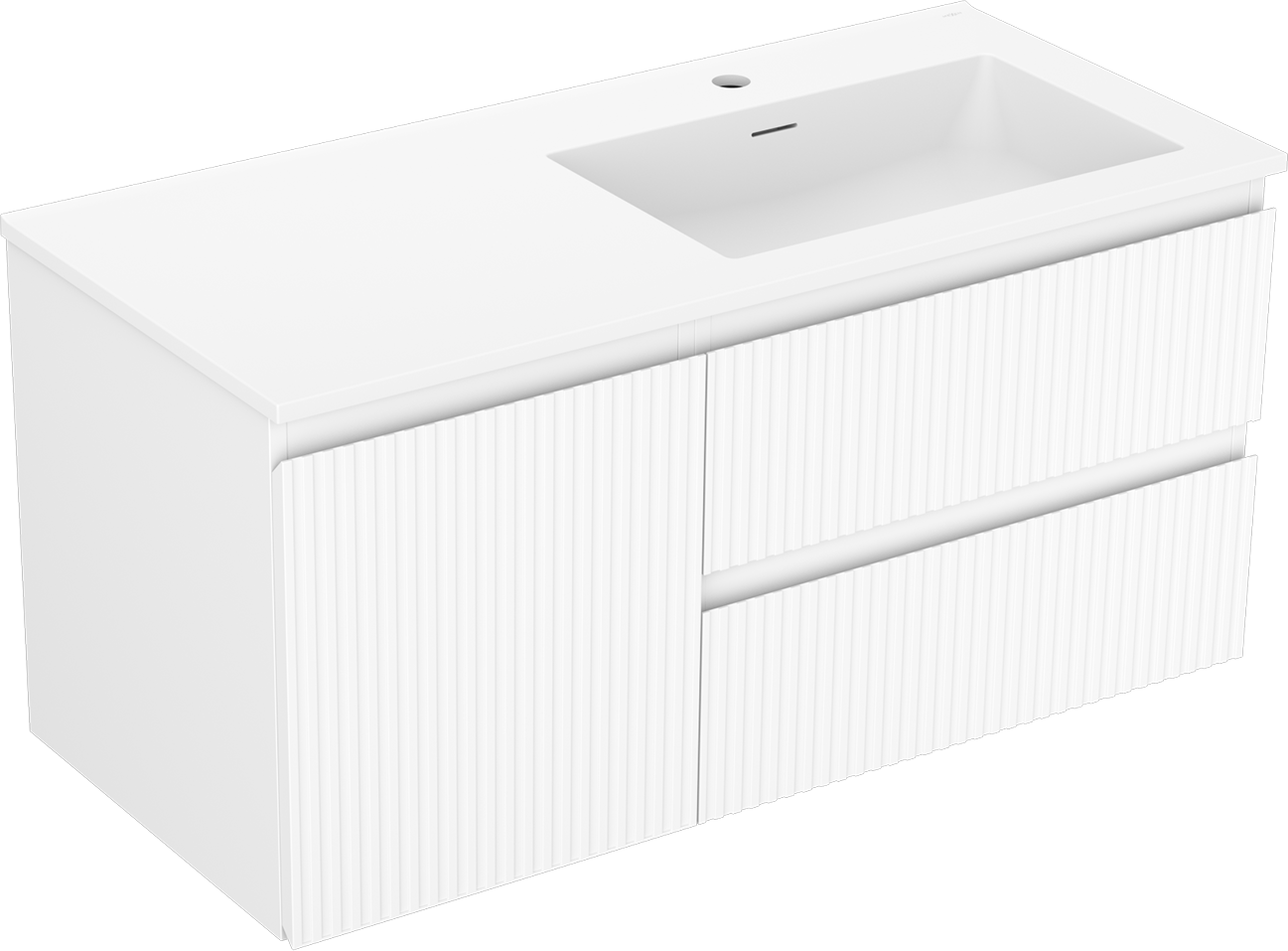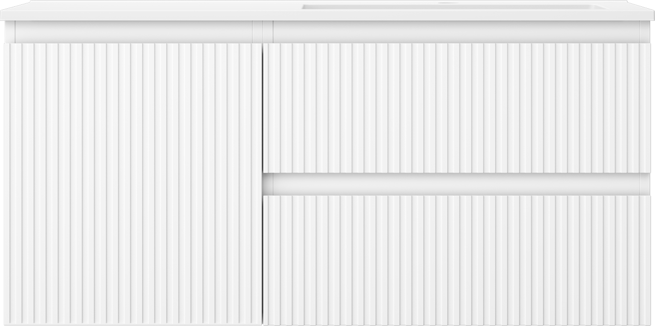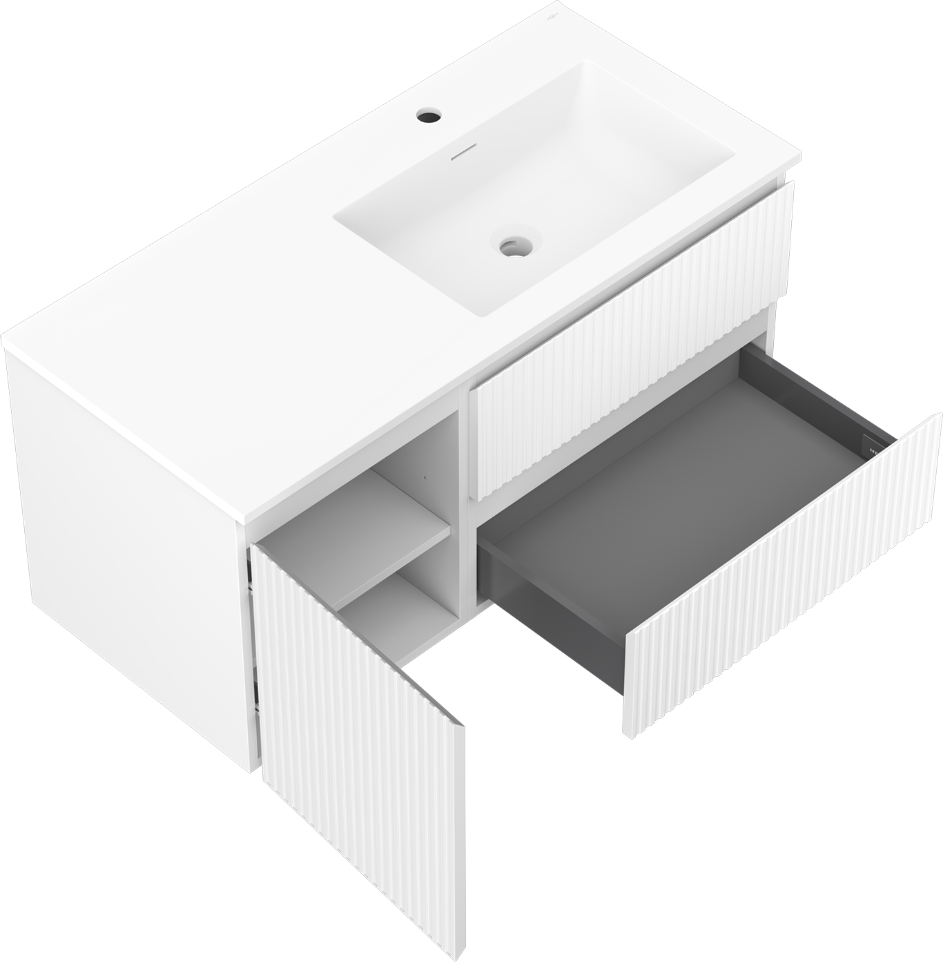 Mexen Rivel badrumsskåp 100 cm med handfat Otis höger, 2S, 1D, räfflad, vit matt - 91A23-10047-3-BBFFF01-W18P01