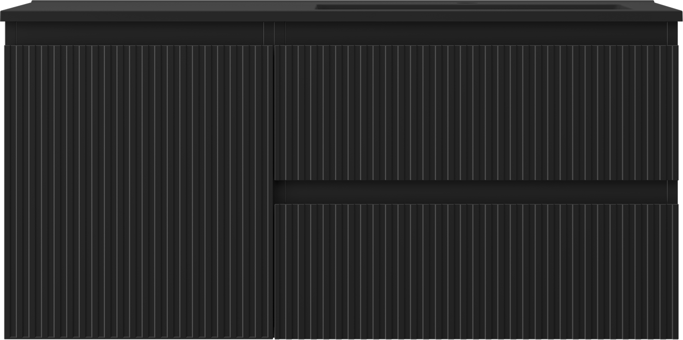 Mexen Rivel badrumsskåp 100 cm med handfat Otis höger, 2S, 1D, ribbad, svart matt - 91A23-10047-3-BBFFF71-W18P71