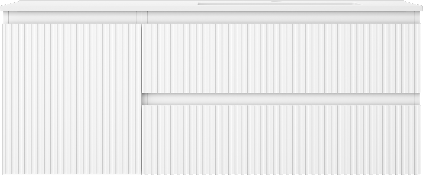 Mexen Rivel badrumsskåp 120 cm med Otis-tvättställ till höger, 2S, 1D, räfflad, vit matt - 91A23-12047-3-BBFFF01-W18P01