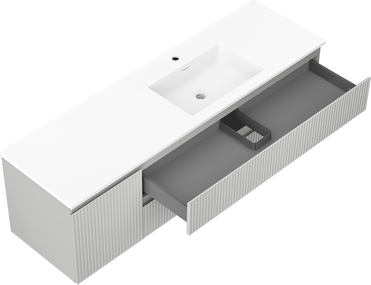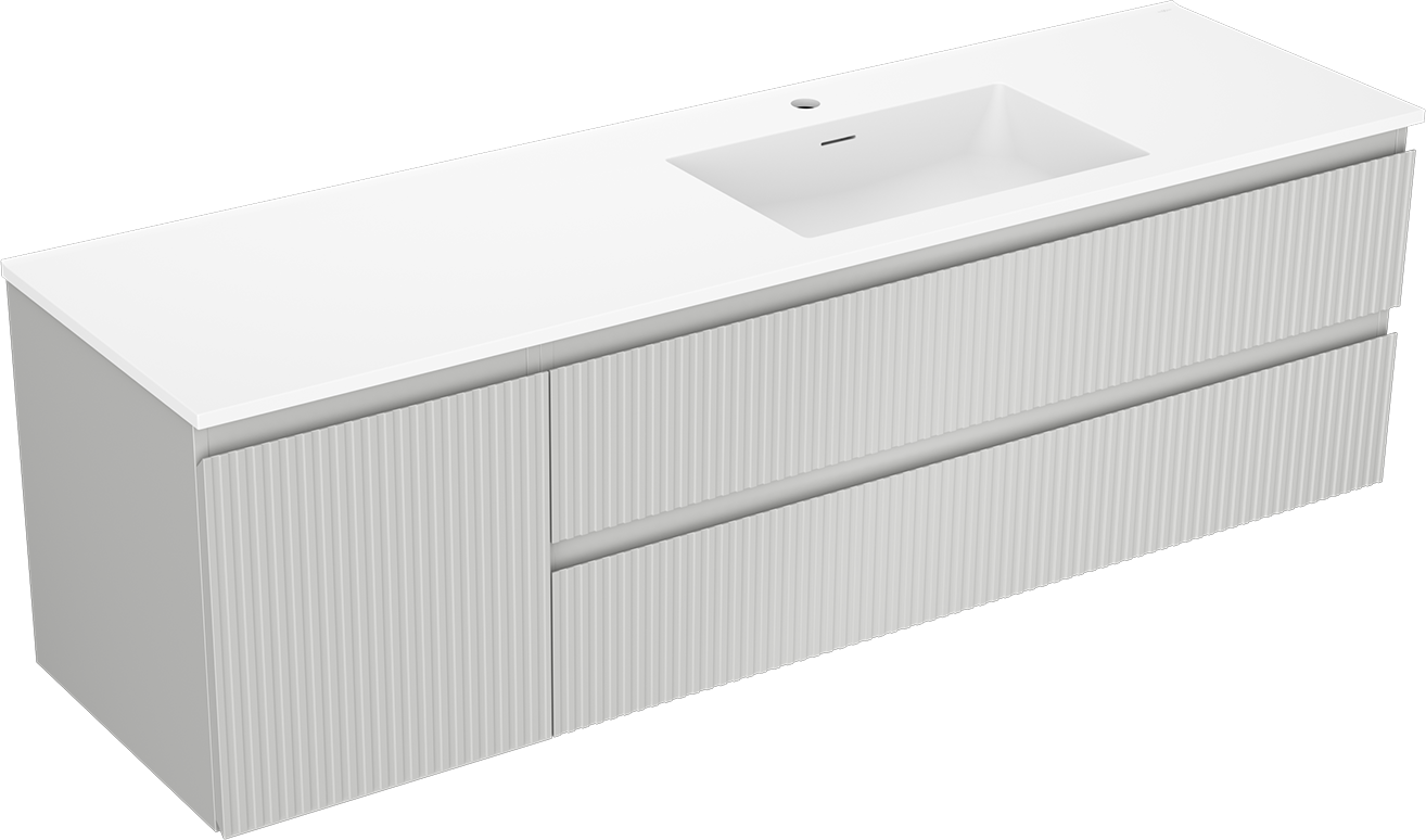 Mexen Rivel badrumsskåp 160 cm med handfat Otis höger, 2S, 1D, räfflad, grå/vit matt - 91A23-16047-3-BBFFF62-W18P01