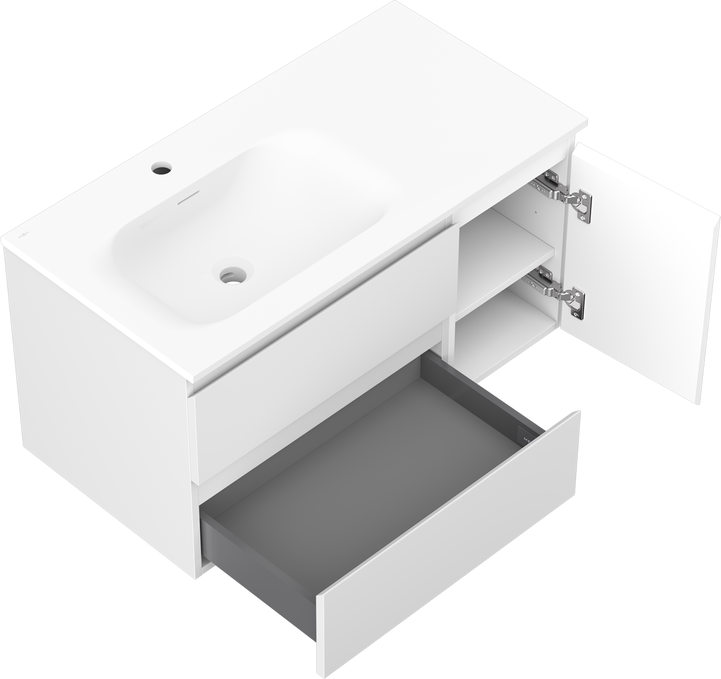 Mexen Orio badrumsskåp 90 cm med handfat Vela vänster, 2S, 1D, vit matt - 91A13-09047-3-BBFFFF01-W23L01