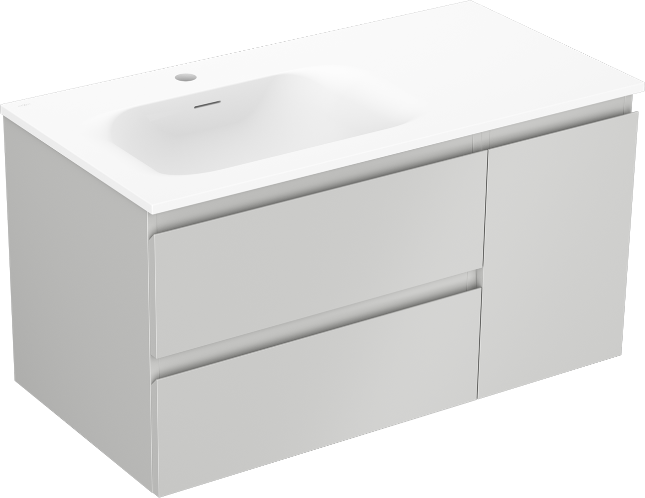 Mexen Orio 90 cm badrumsskåp med vänster handfat Vela, 2L, 1D, grå matt/vit matt - 91A13-09047-3-BBFFF62-W23L01
