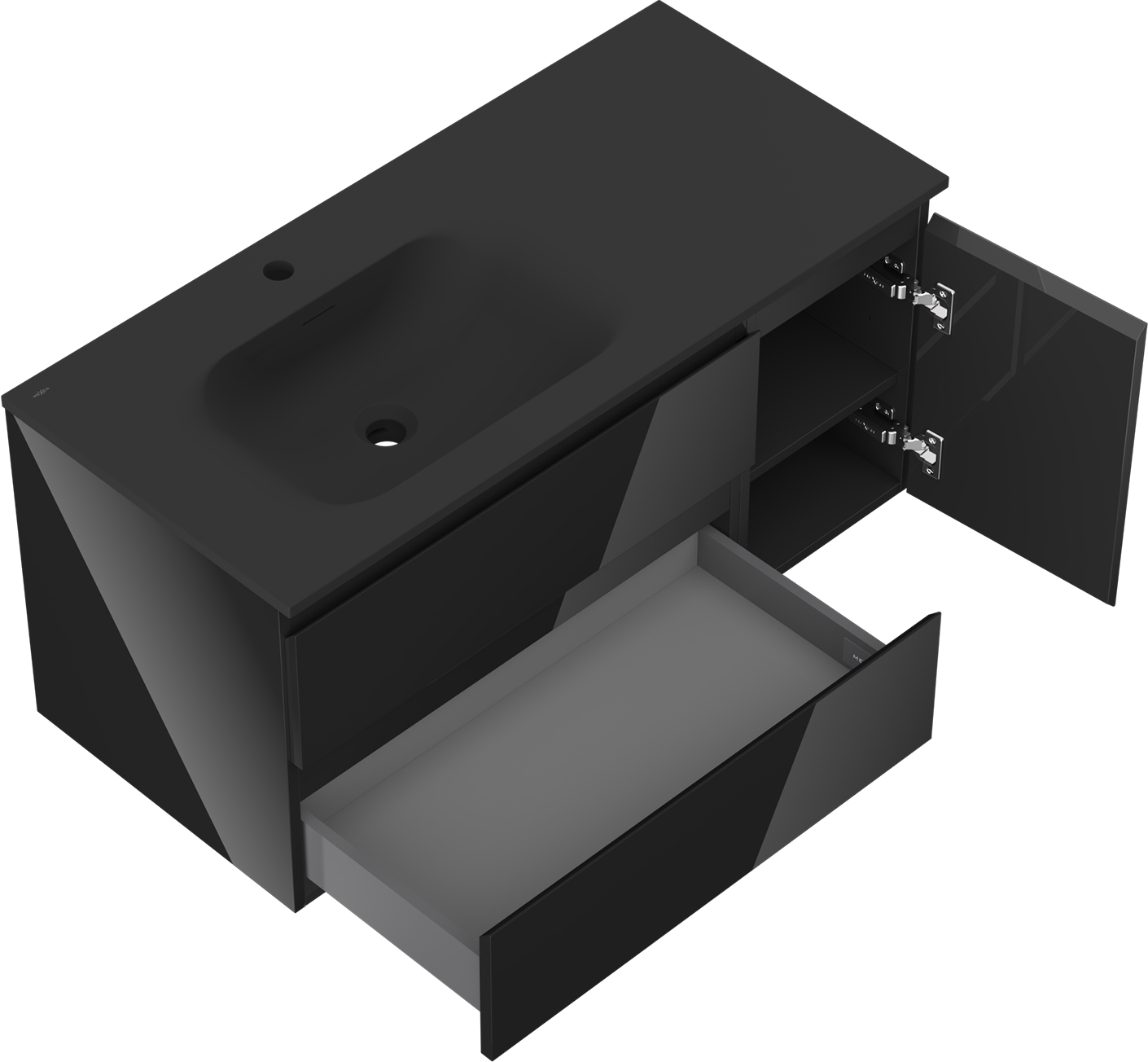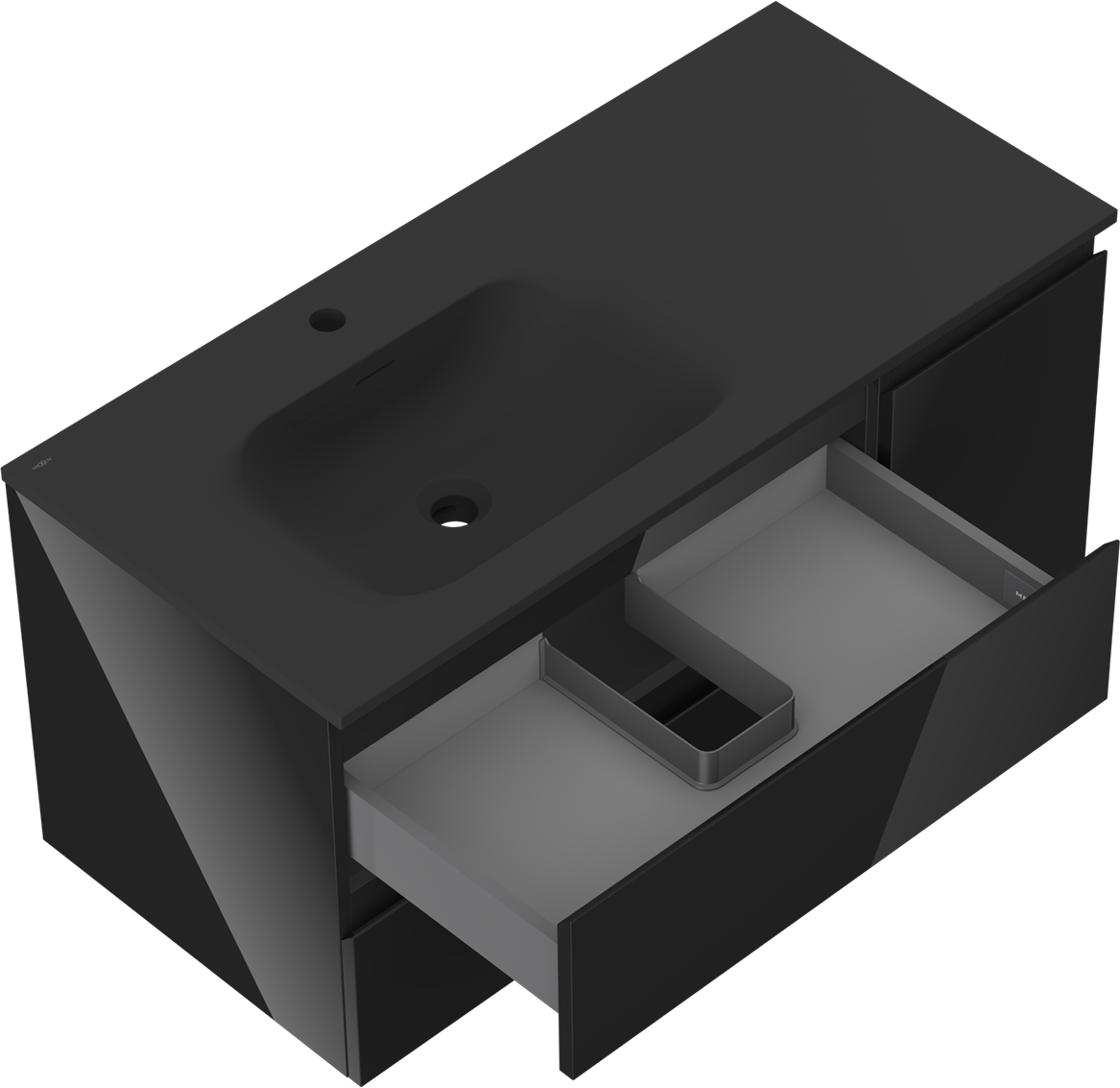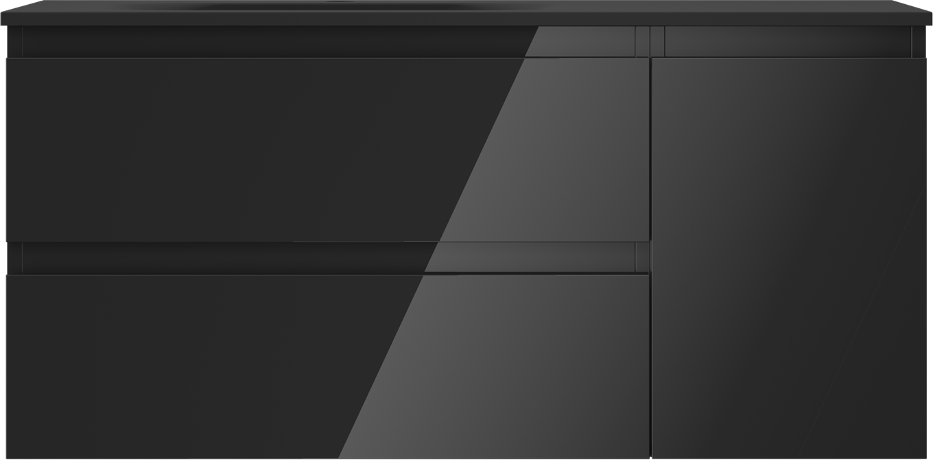Mexen Orio badrumsskåp 100 cm med tvättställ Vela vänster, 2S, 1D, svart glans/svart matt - 91A13-10047-3-BBFFF70-W23L71
