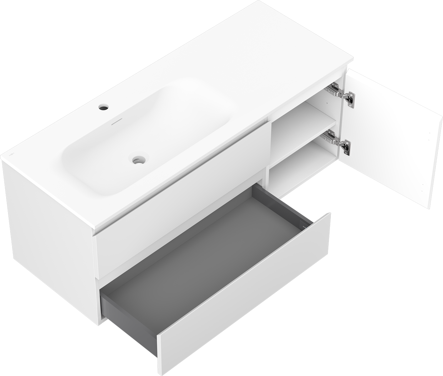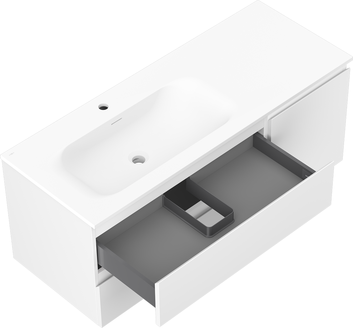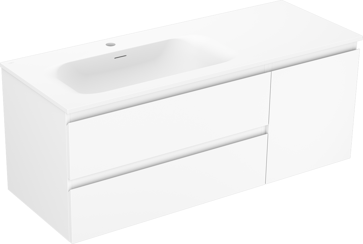 Mexen Orio badrumsskåp 120 cm med tvättställ Vela vänster, 2S, 1D, vit matt - 91A13-12047-3-BBFFFF01-W23L01