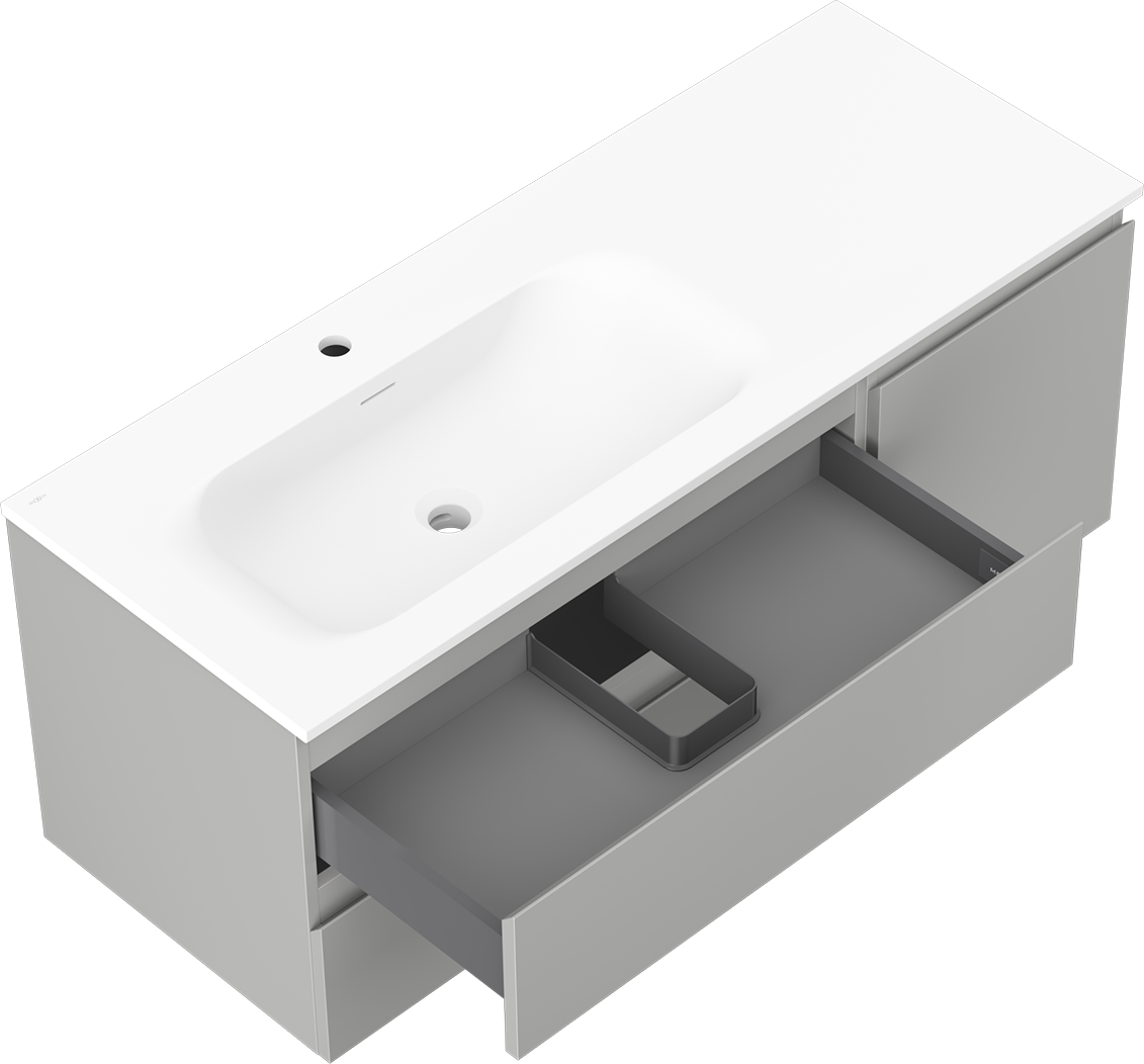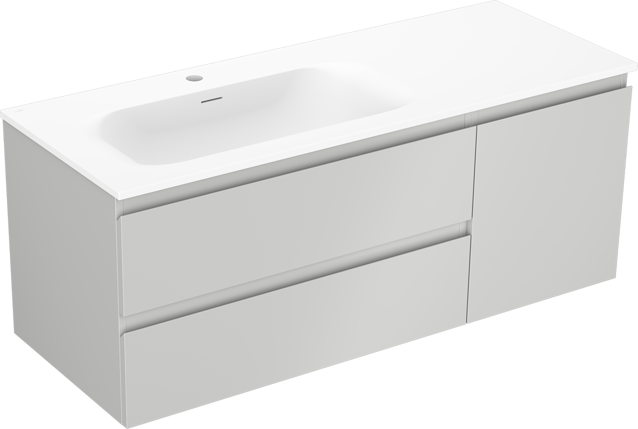 Mexen Orio 120 cm badrumsskåp med Vela handfat vänster, 2S, 1D, grå matt/vit matt - 91A13-12047-3-BBFFF62-W23L01