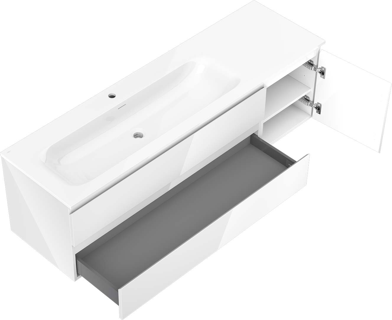Mexen Orio badrumsskåp 160 cm med tvättställ Vela vänster, 2L, 1D, vit högglans - 91A13-16047-3-BBFFF00-W23L00