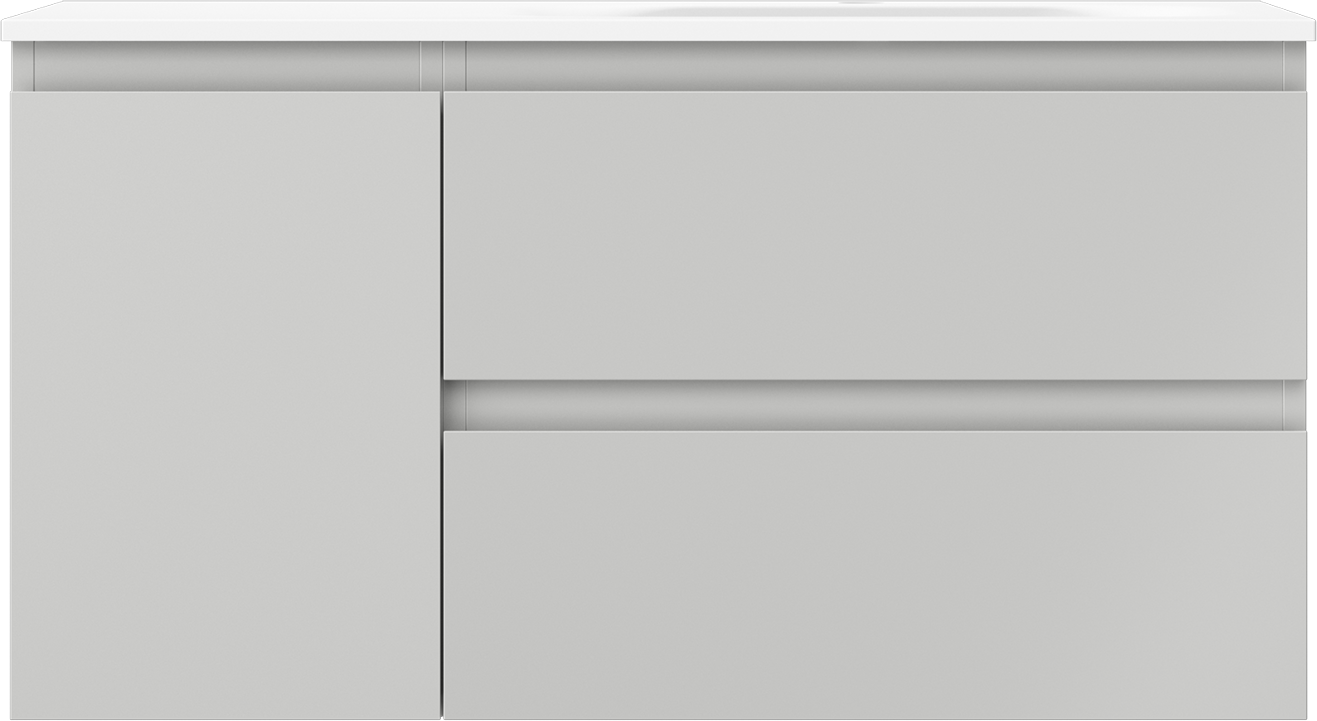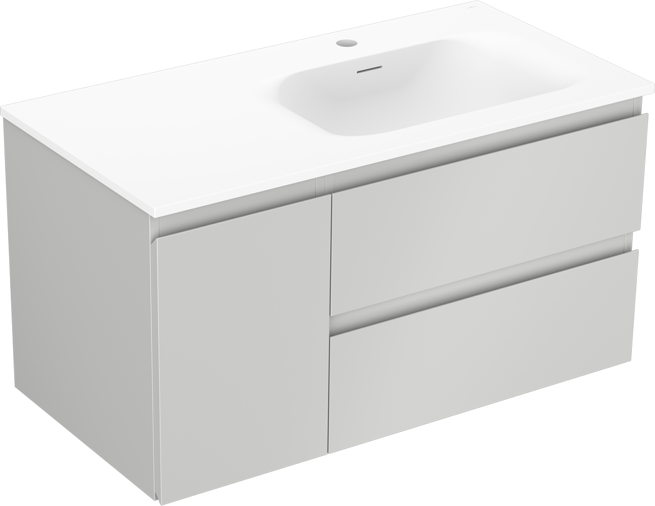 Utskärningen i lådan är utformad på ett sådant sätt att den rymmer vattenlåset som är nödvändigt i tvättställsinstallationer. Tack vare detta kan möbeln installeras fullt ut funktionellt, utan att behöva avstå från utrymme i lådan för installationen.