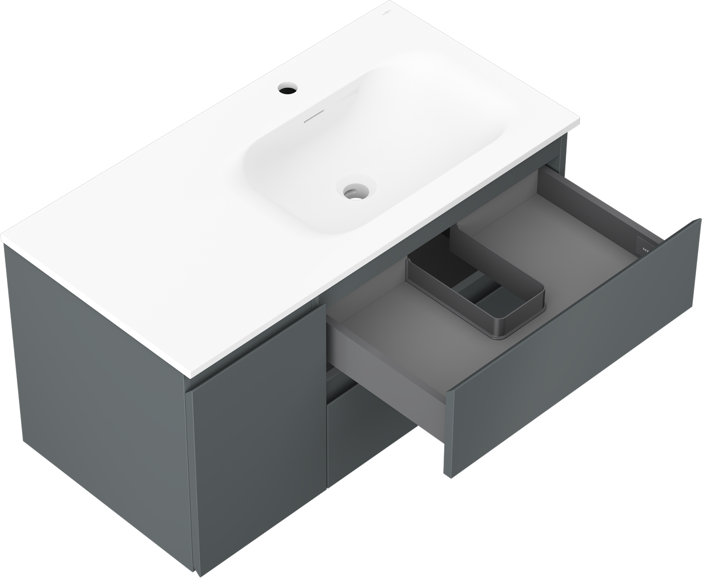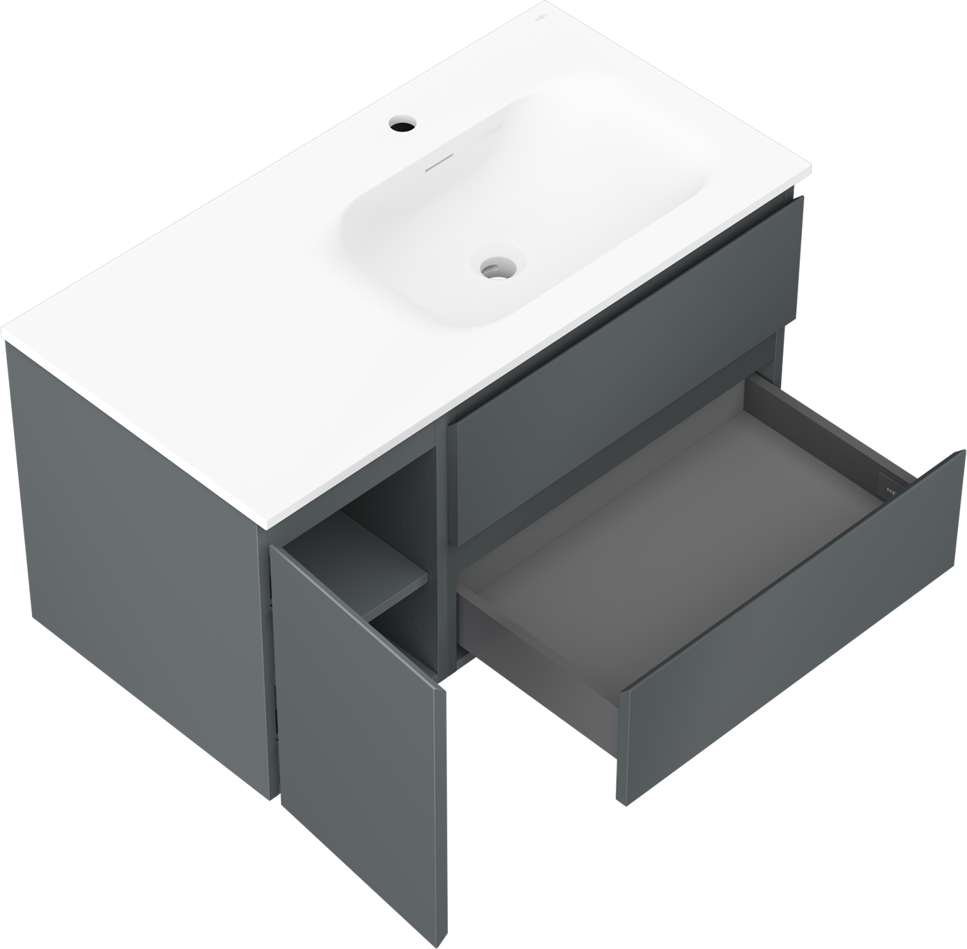 Mexen Orio badrumsskåp 90 cm med handfat Vela höger, 2S, 1D, grafit matt/vit matt - 91A13-09047-3-BBFFF66-W23P01