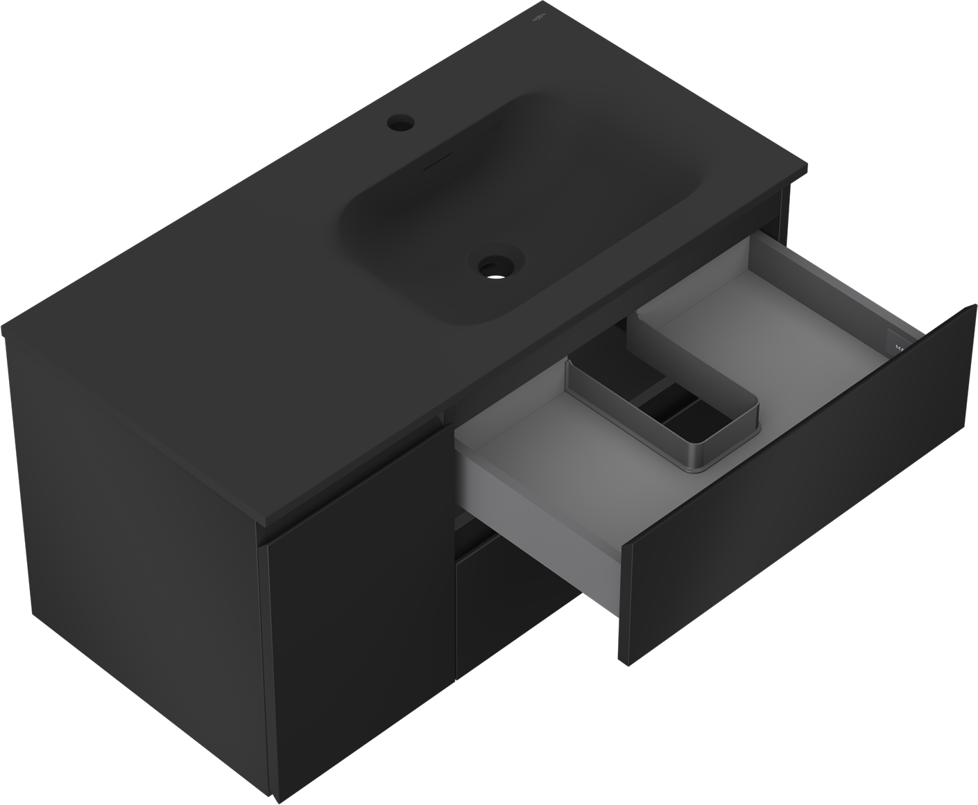 Utskärningen i lådan är utformad på ett sådant sätt att den rymmer vattenlåset som är nödvändigt i tvättställsinstallationer. Tack vare detta kan möbeln installeras fullt ut funktionellt, utan att behöva avstå från utrymme i lådan för installationen.