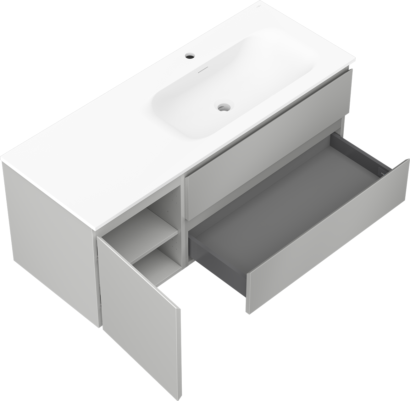 Mexen Orio badrumsskåp 120 cm med handfat Vela höger, 2S, 1D, grå matt/vit matt - 91A13-12047-3-BBFFF62-W23P01