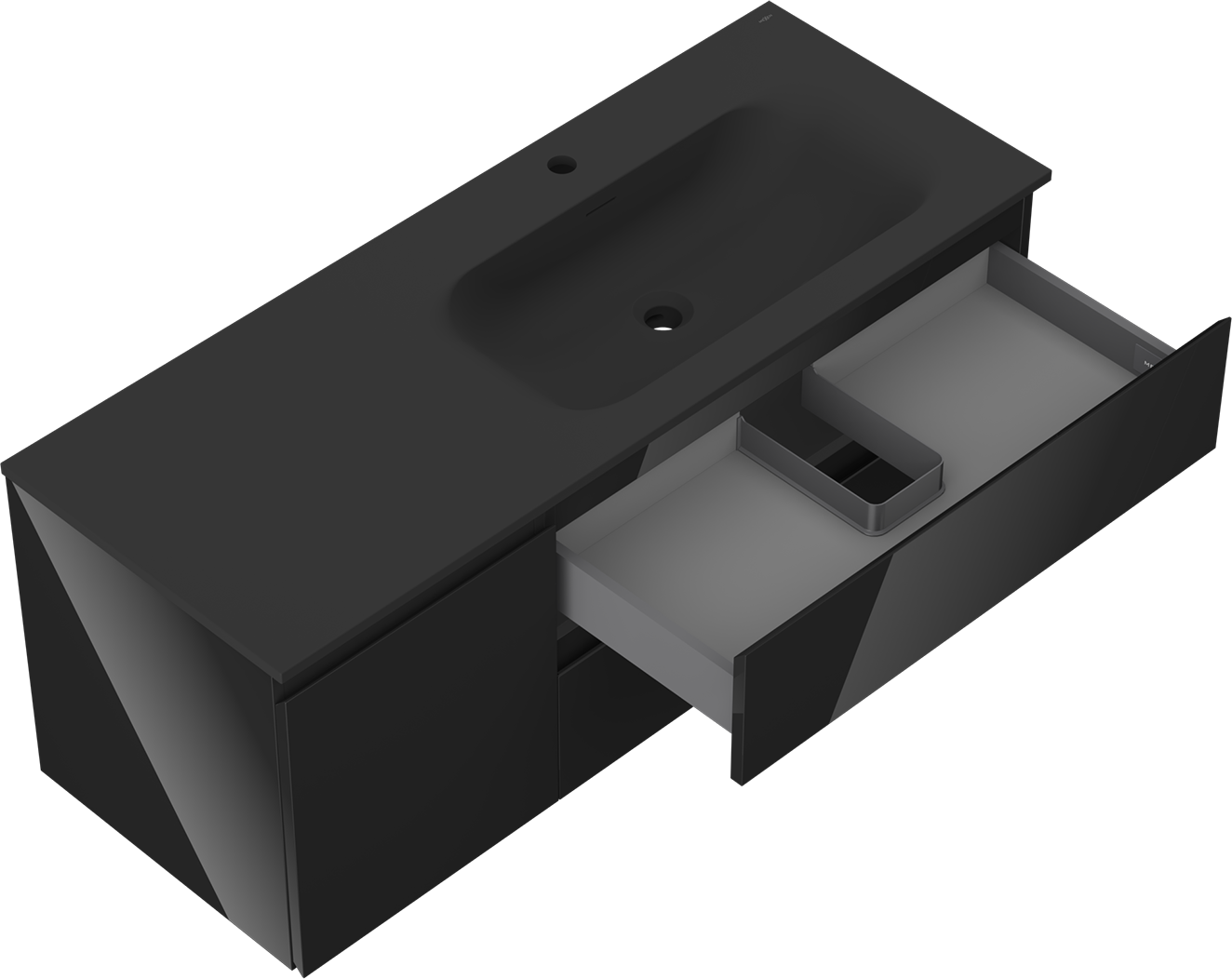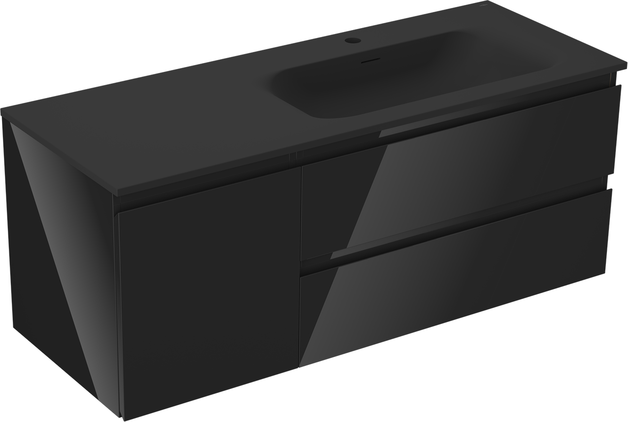 Mexen Orio badrumsskåp 120 cm med diskbänk Vela höger, 2S, 1D, svart glans/svart matt - 91A13-12047-3-BBFFF70-W23P71