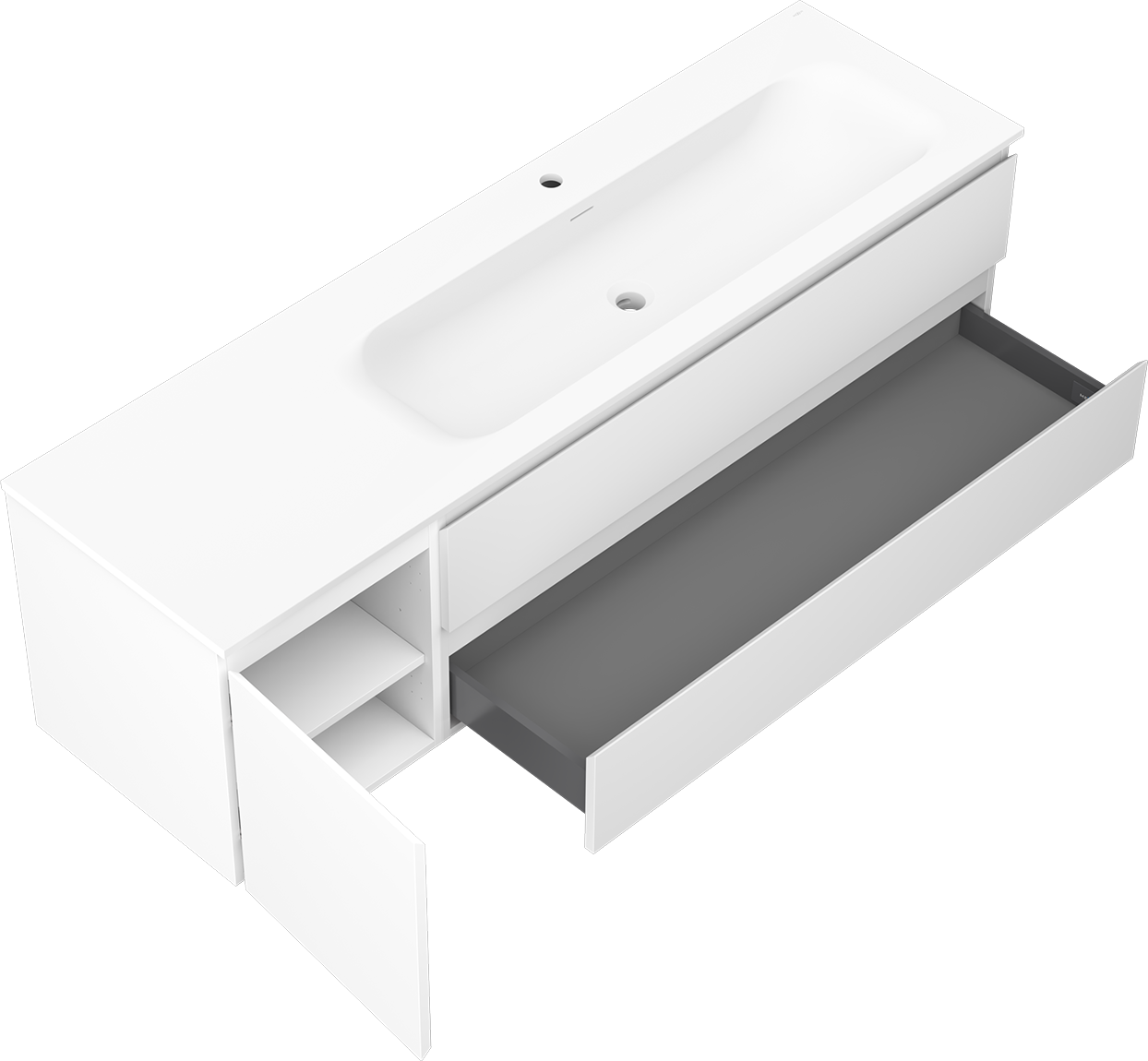 Mexen Orio badrumsskåp 160 cm med tvättställ Vela höger, 2S, 1D, vit matt - 91A13-16047-3-BBFFFF01-W23P01