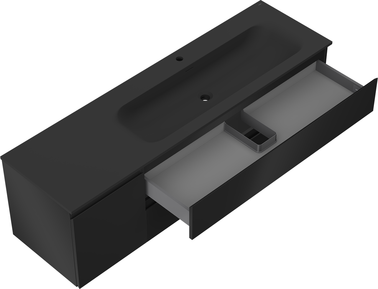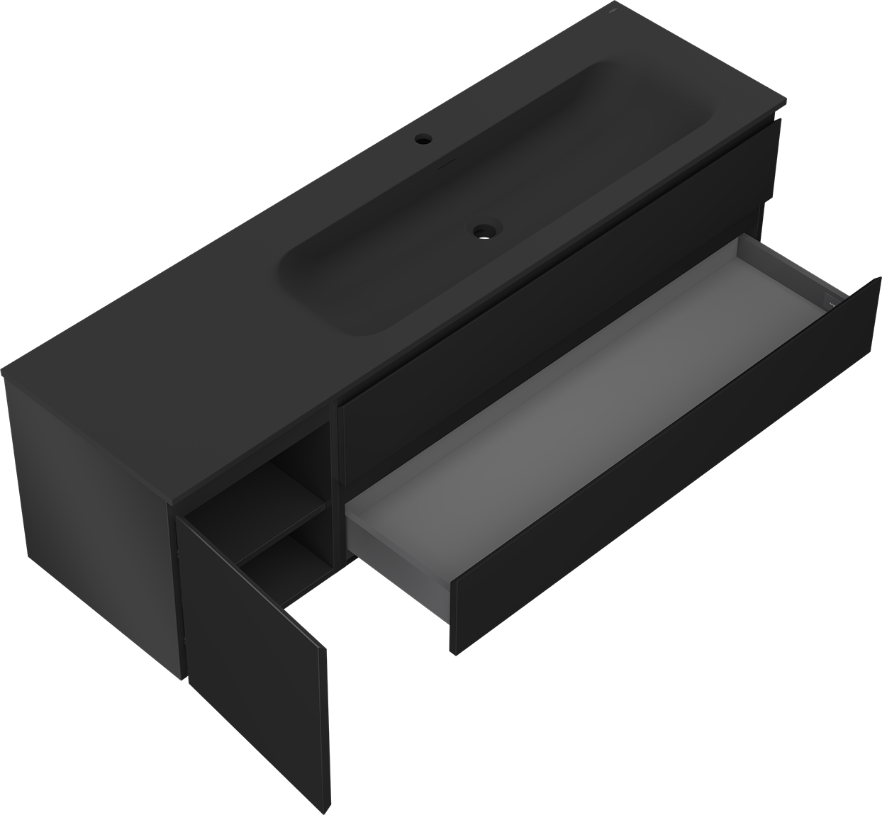 Mexen Orio badrumsskåp 160 cm med handfat Vela höger, 2S, 1D, svart matt - 91A13-16047-3-BBFFF71-W23P71