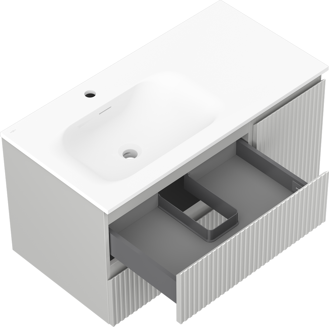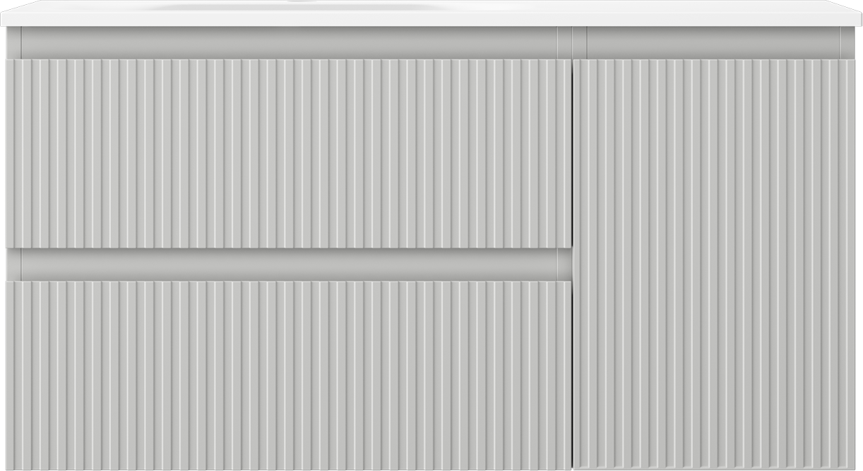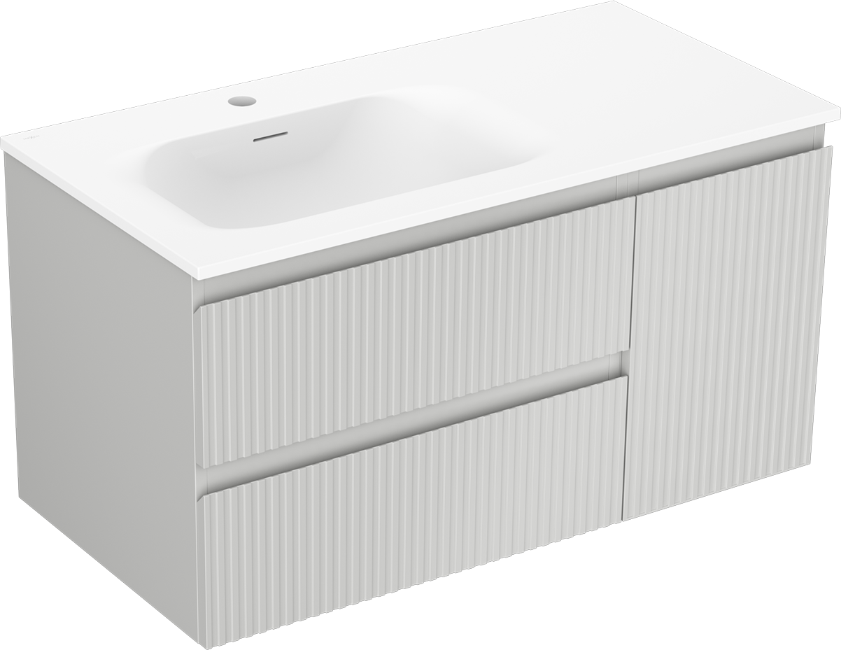Mexen Rivel 90 cm badrumsskåp med handfat Vela vänster, 2S, 1D, räfflad, grå matt/vit matt - 91A23-09047-3-BBFFF62-W23L01