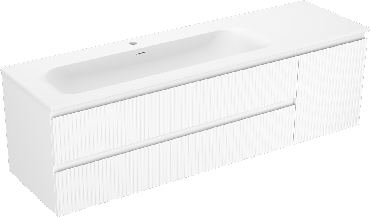 Mexen Rivel badrumsskåp 160 cm med tvättställ Vela vänster, 2S, 1D, räfflad, vit matt - 91A23-16047-3-BBFFF01-W23L01