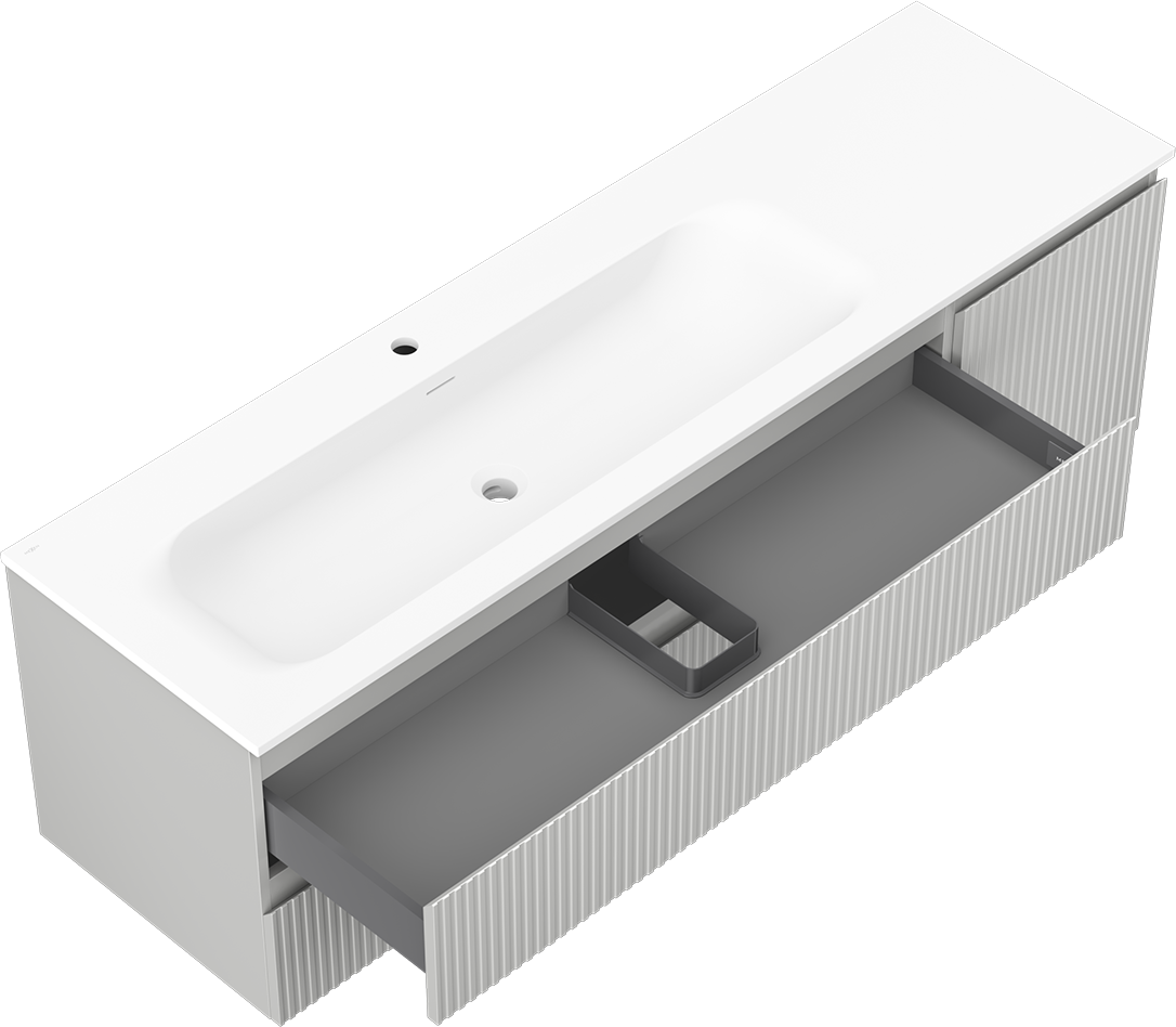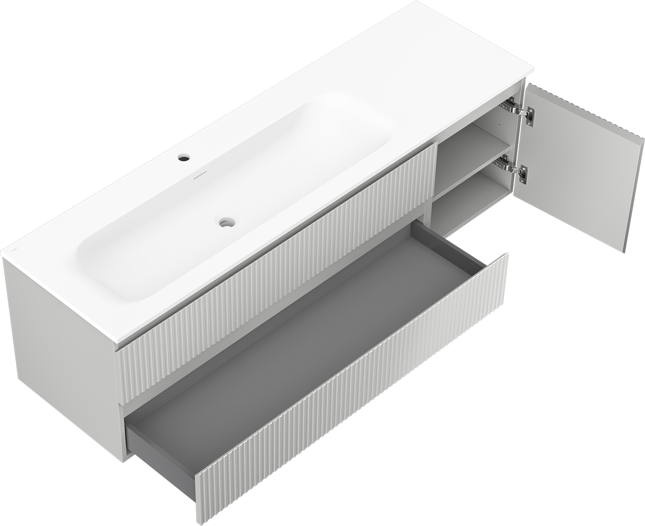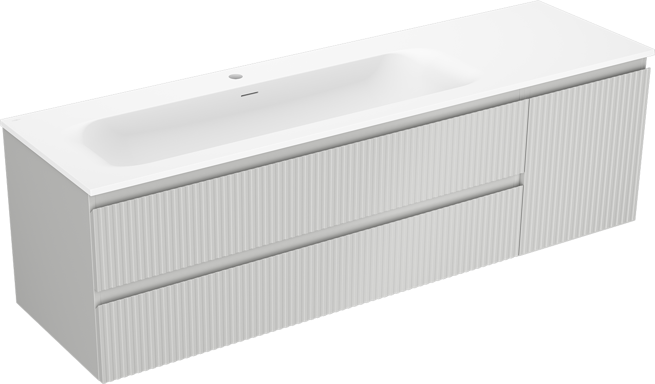 Mexen Rivel badrumsskåp 160 cm med handfat Vela vänster, 2S, 1D, räfflad, grå matt/vit matt - 91A23-16047-3-BBFFF62-W23L01